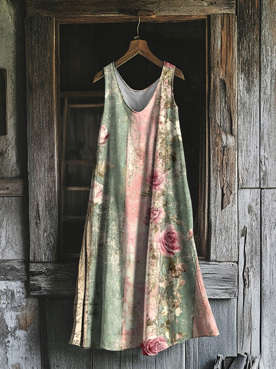 Damen Vintage Floral Art Print Freizeit kleid