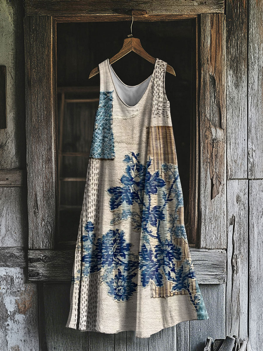 Damen botanisches Blumen kleid aus Baumwolle und Leinen
