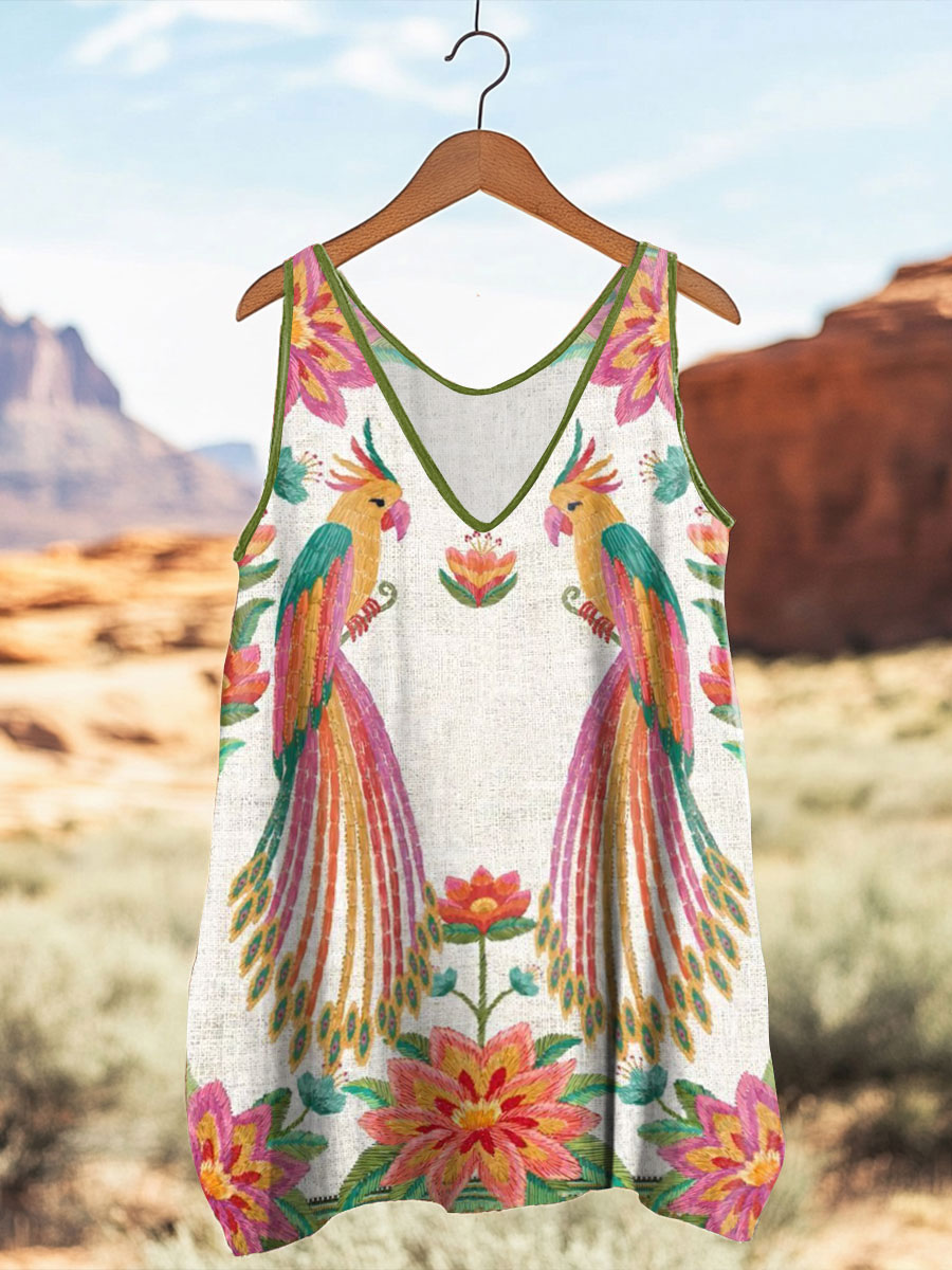 Damen Papagei Blumen druck V-Ausschnitt ärmelloses Top