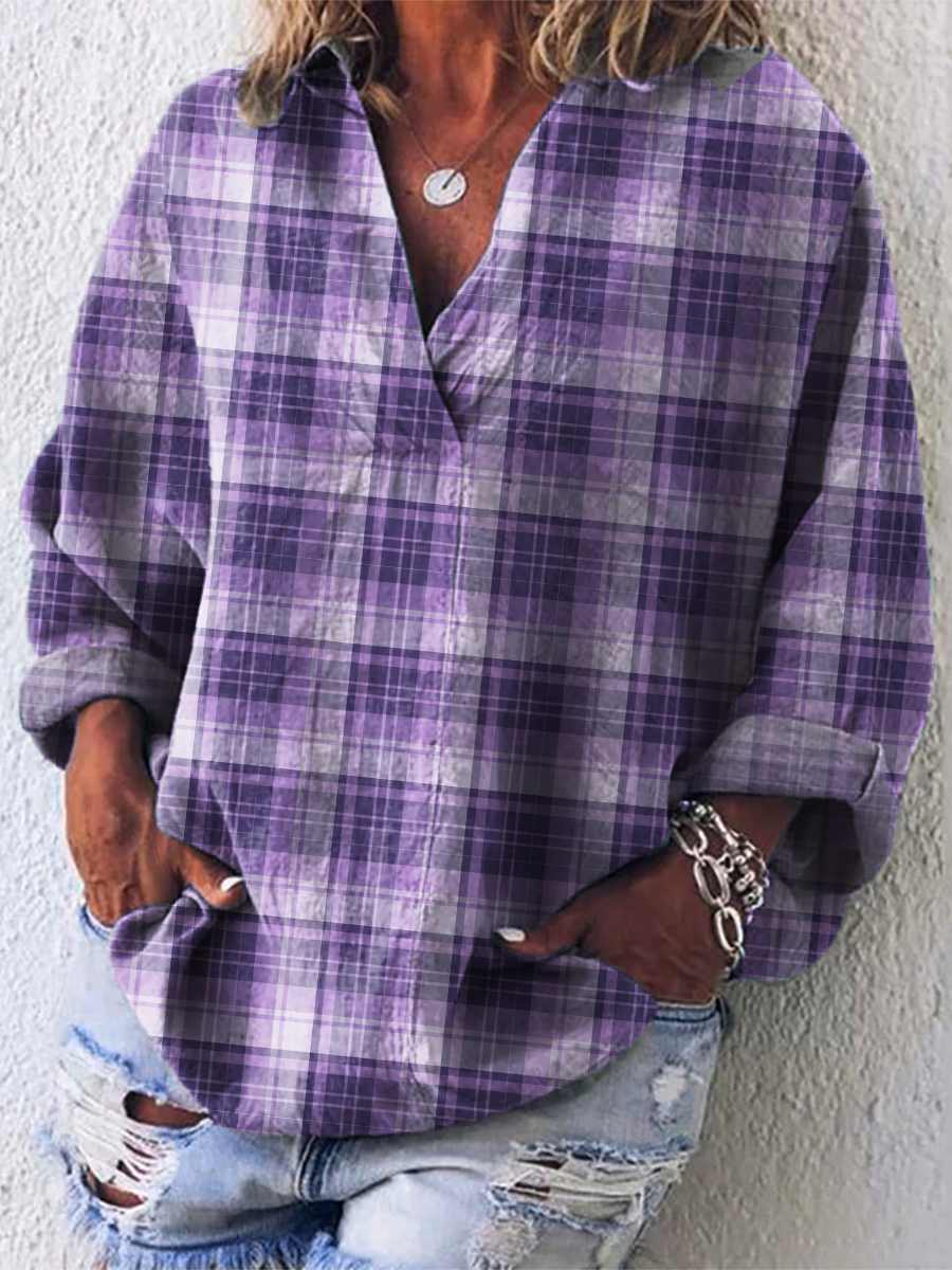 Frauen Alzheimer Check Print V-Ausschnitt T-Shirt