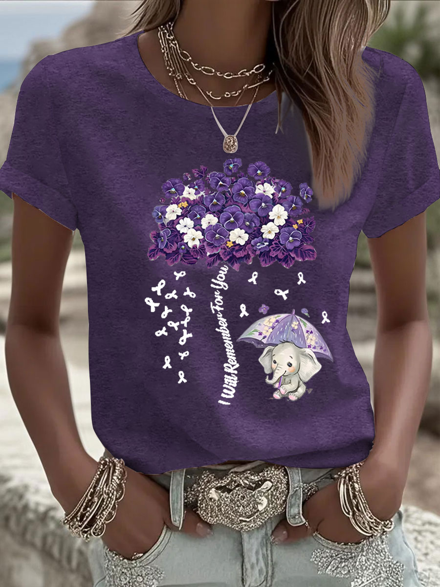 Frauen Alzheimer-Bewusstsein Lila Blumen druck Casual T-Shirt