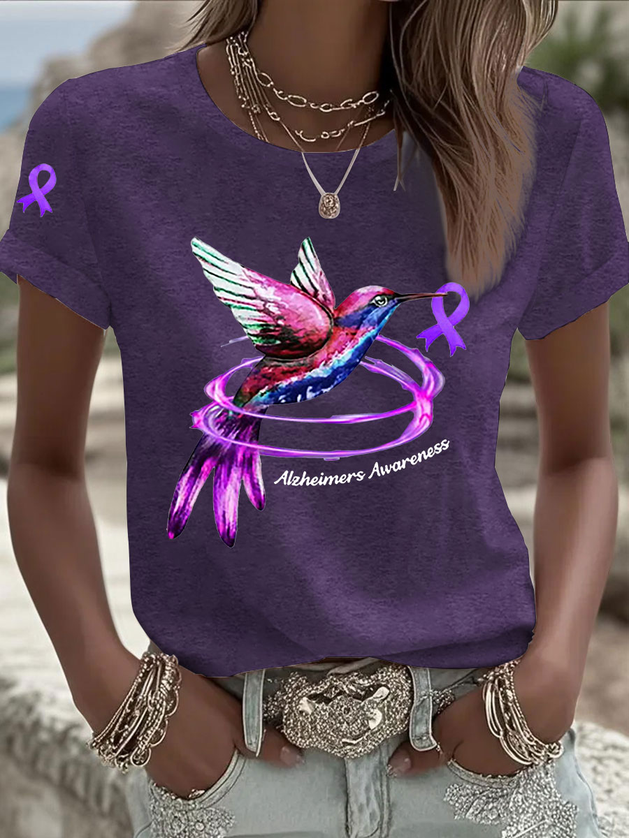 Frauen Alzheimer-Bewusstsein Lila Band Print Casual T-Shirt
