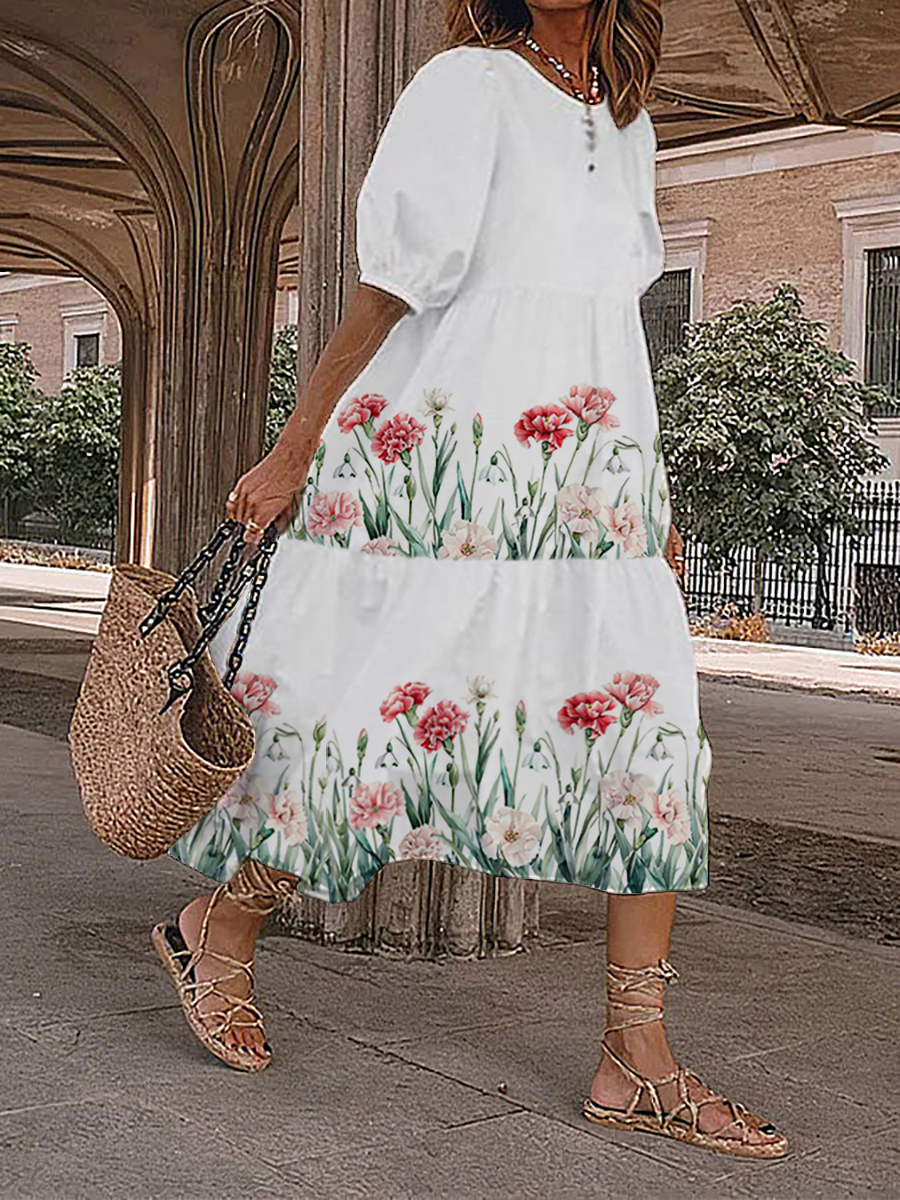 Frauen Alzheimer Bewusstsein Lila Blume Bedrucktes Baumwoll Leinen Kurzarm Maxi kleid