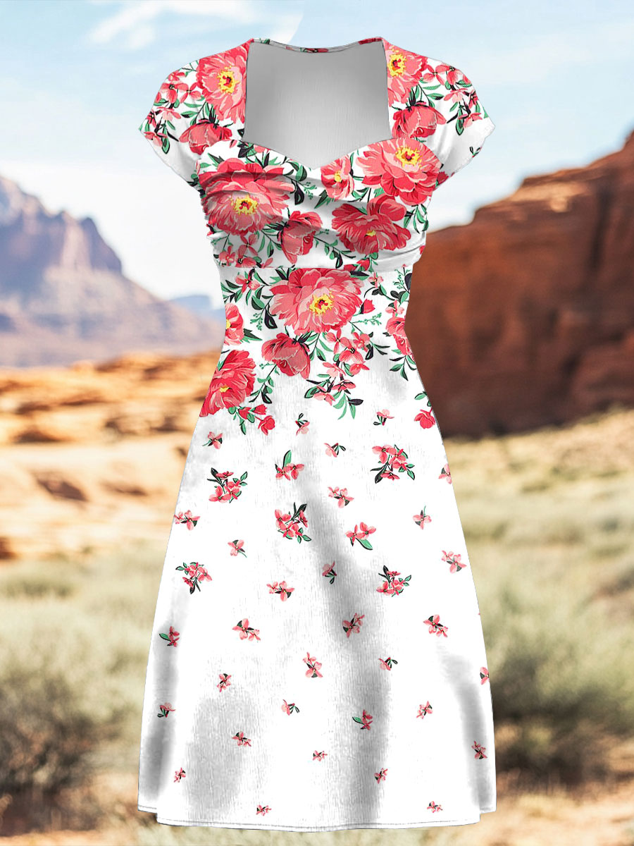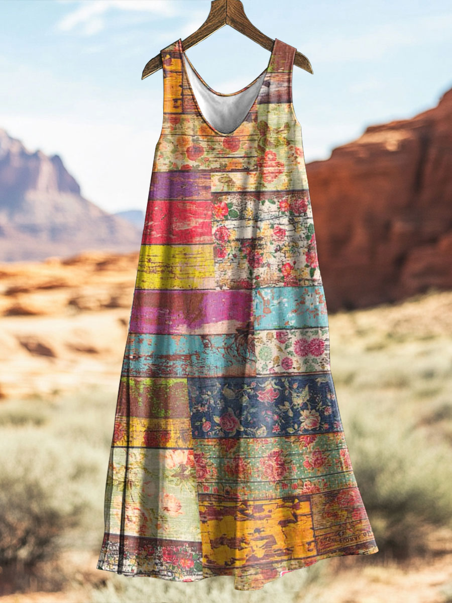 Damen Retro-Kleid mit geometrischem Blumen druck ärmelloses Kleid