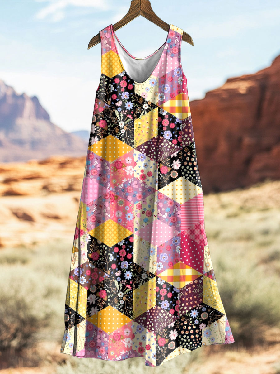 Damen geometrisches ärmelloses Kleid mit Blumen druck