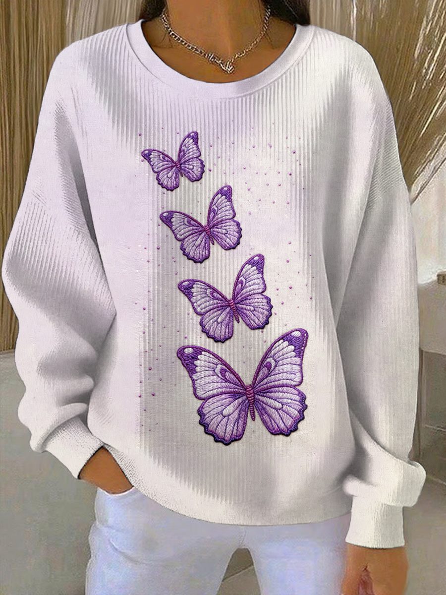 Damen-Sweatshirt mit Rundhals ausschnitt, lila Schmetterling, lässig