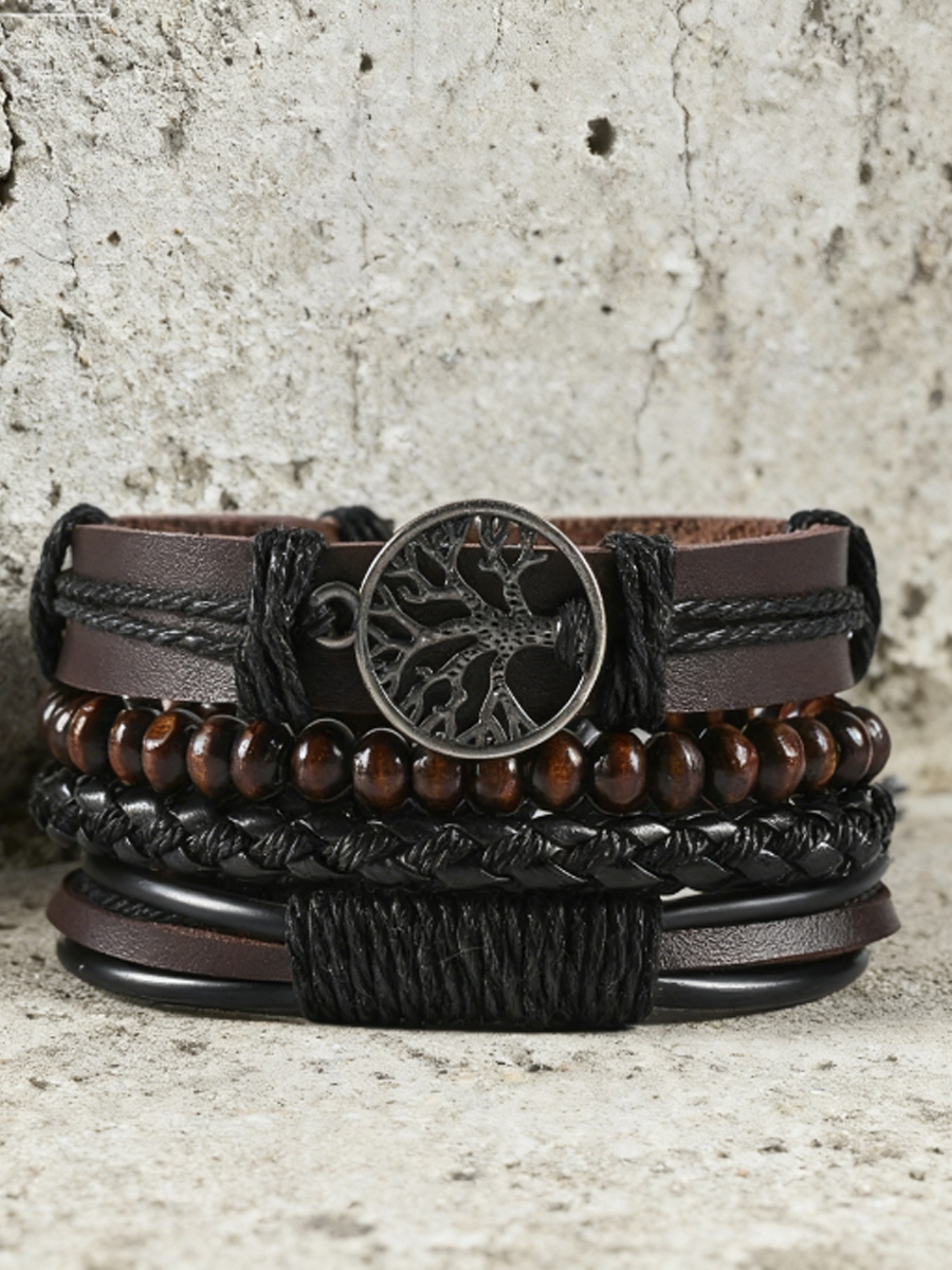 Herren baum des Lebens Vintage gewebtes personal isiertes Leder armband dreiteiliges Set