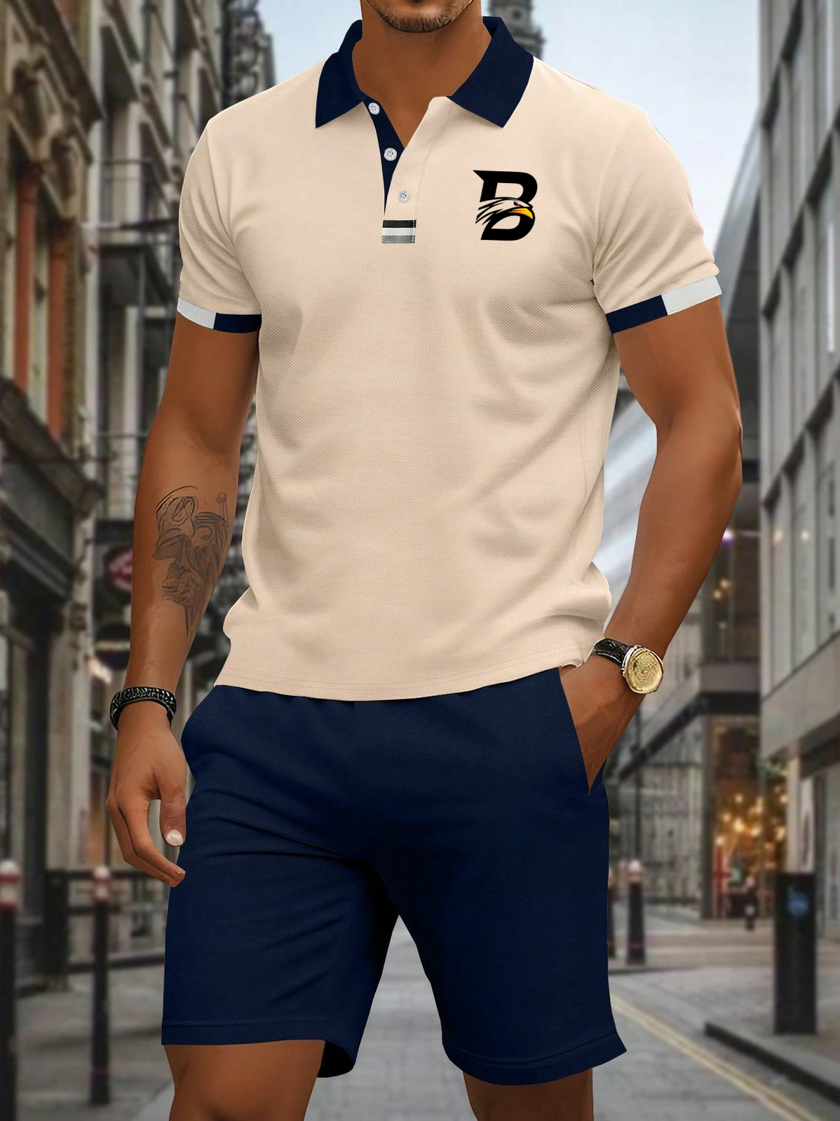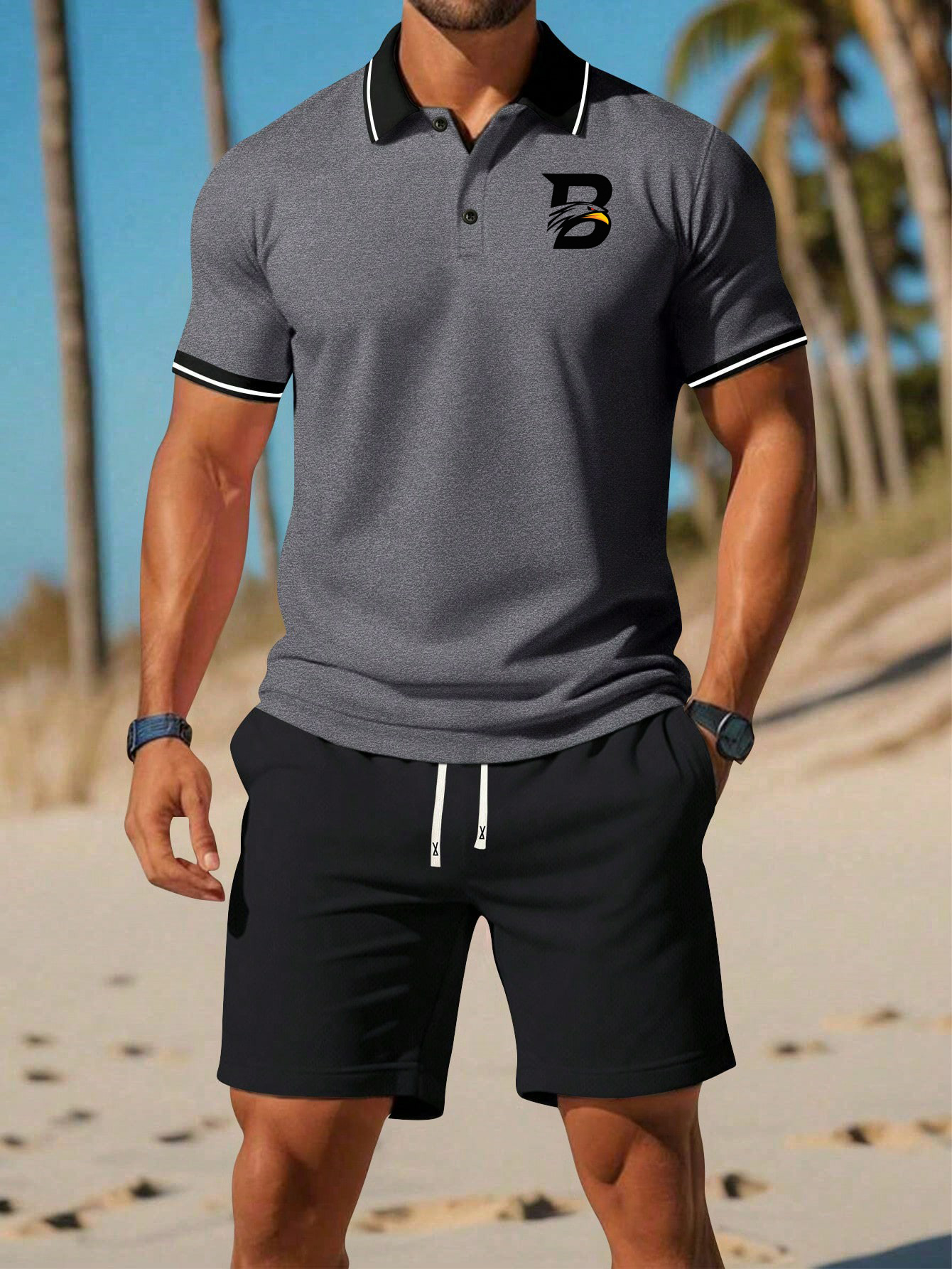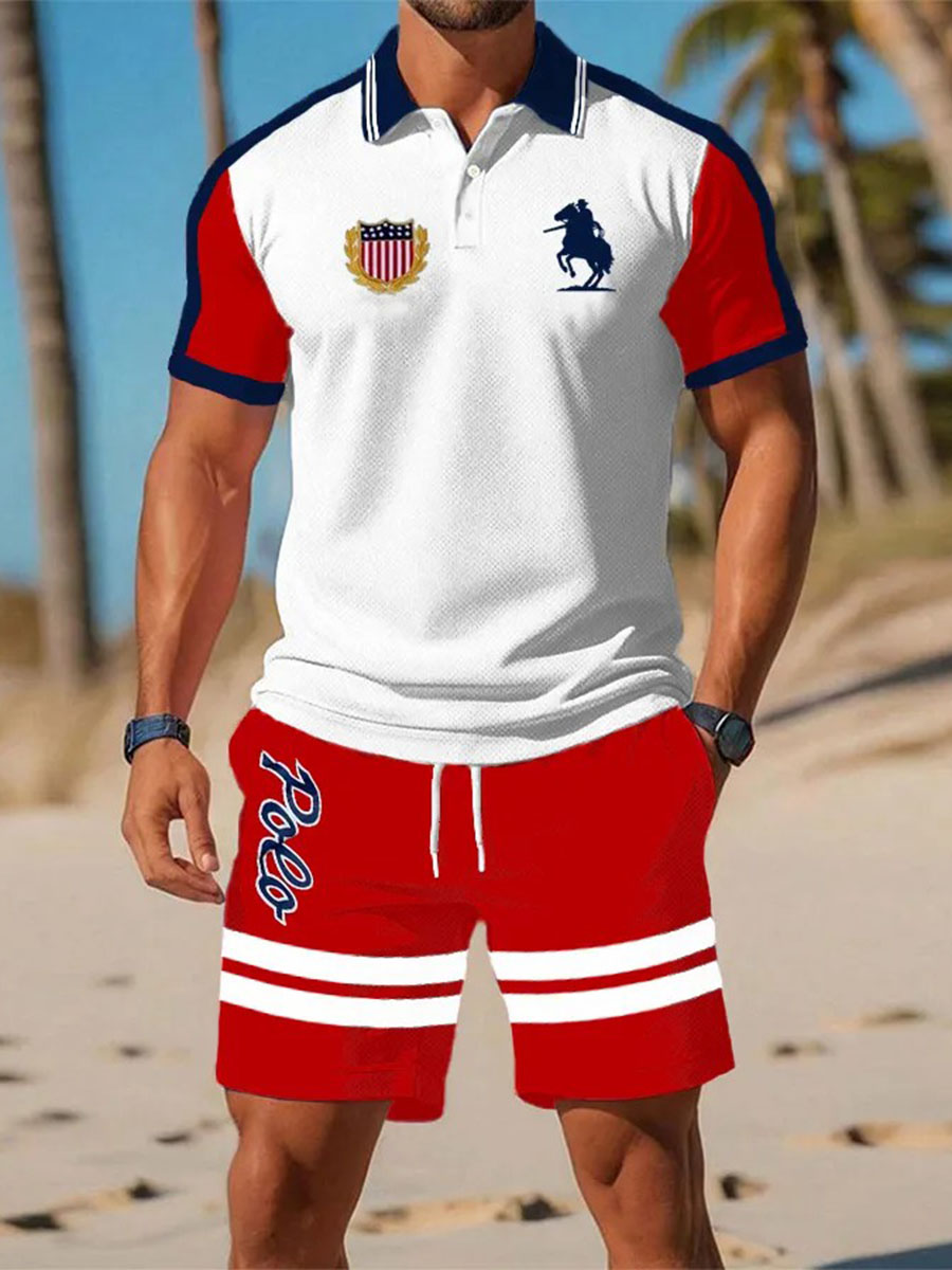 Herren-Lässiger Business-Poloanzug mit kurzen Ärmeln