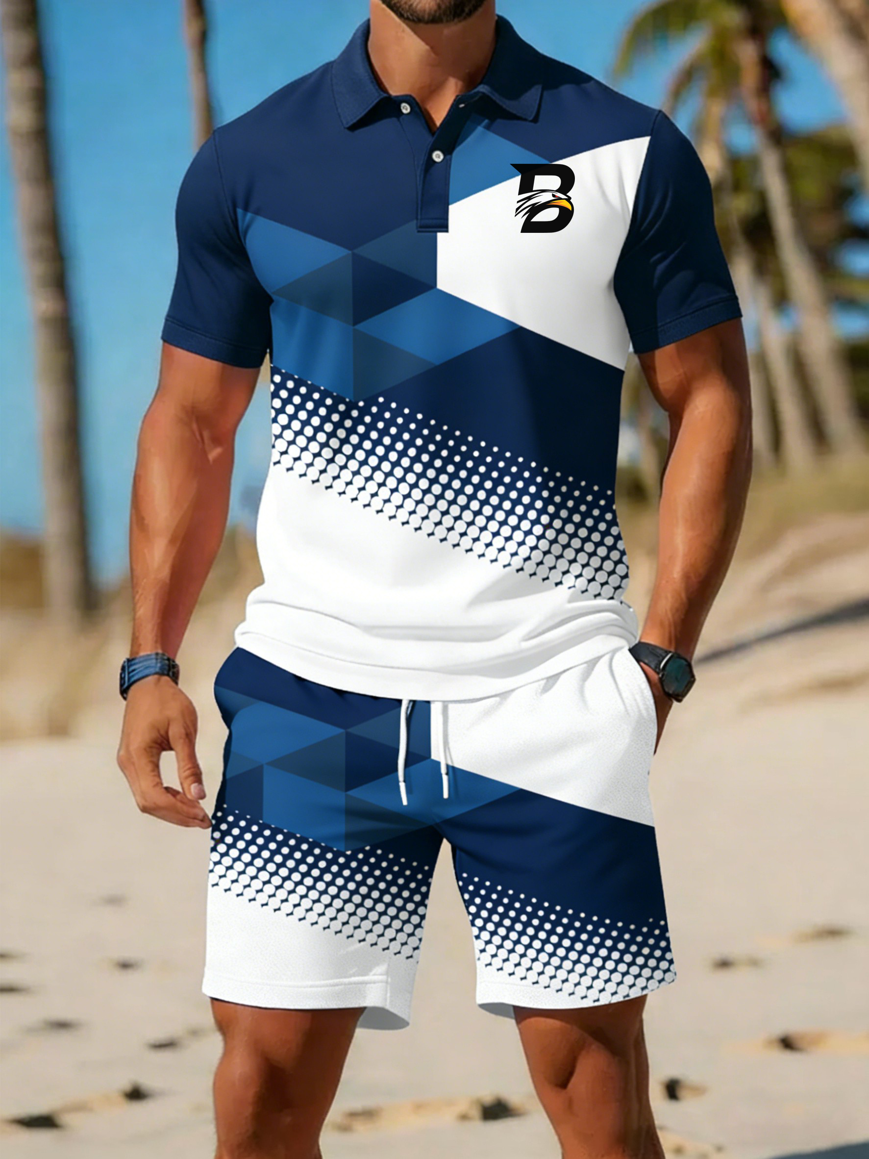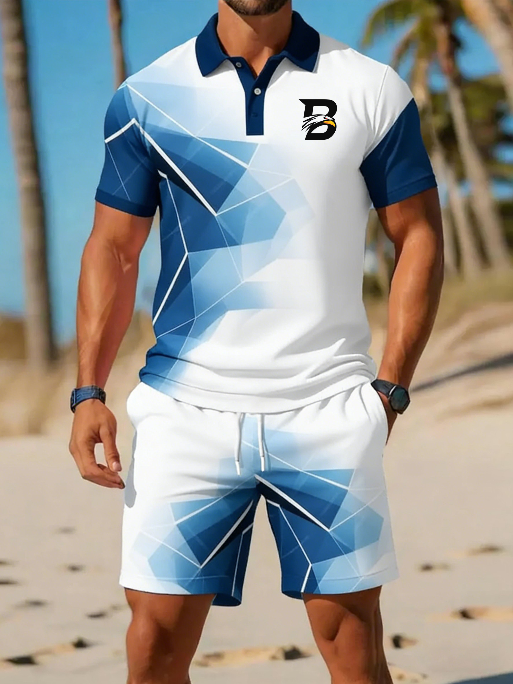 Zweiteiliges Herren-Set mit geometrischem Druck