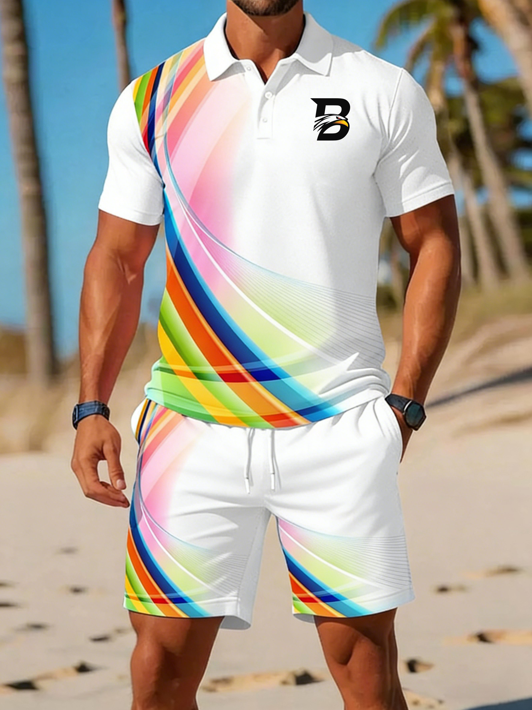 Zweiteiliges Herren-Set mit geometrischem Kunstdruck