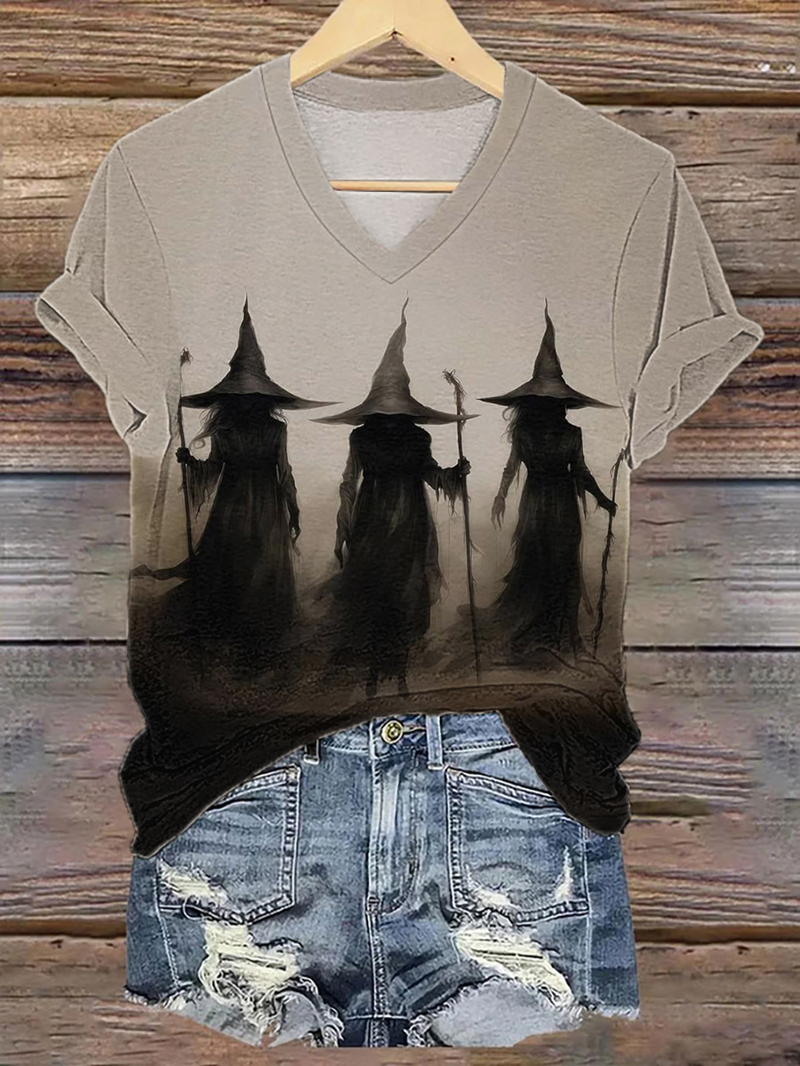 Frauen Halloween Hexe im Creek Print T-Shirt