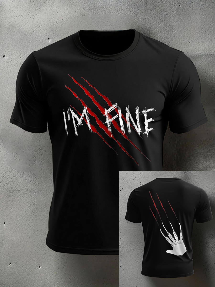 Lustiges Halloween für Männer I'm Fine Scratch Print Casual T-Shirt
