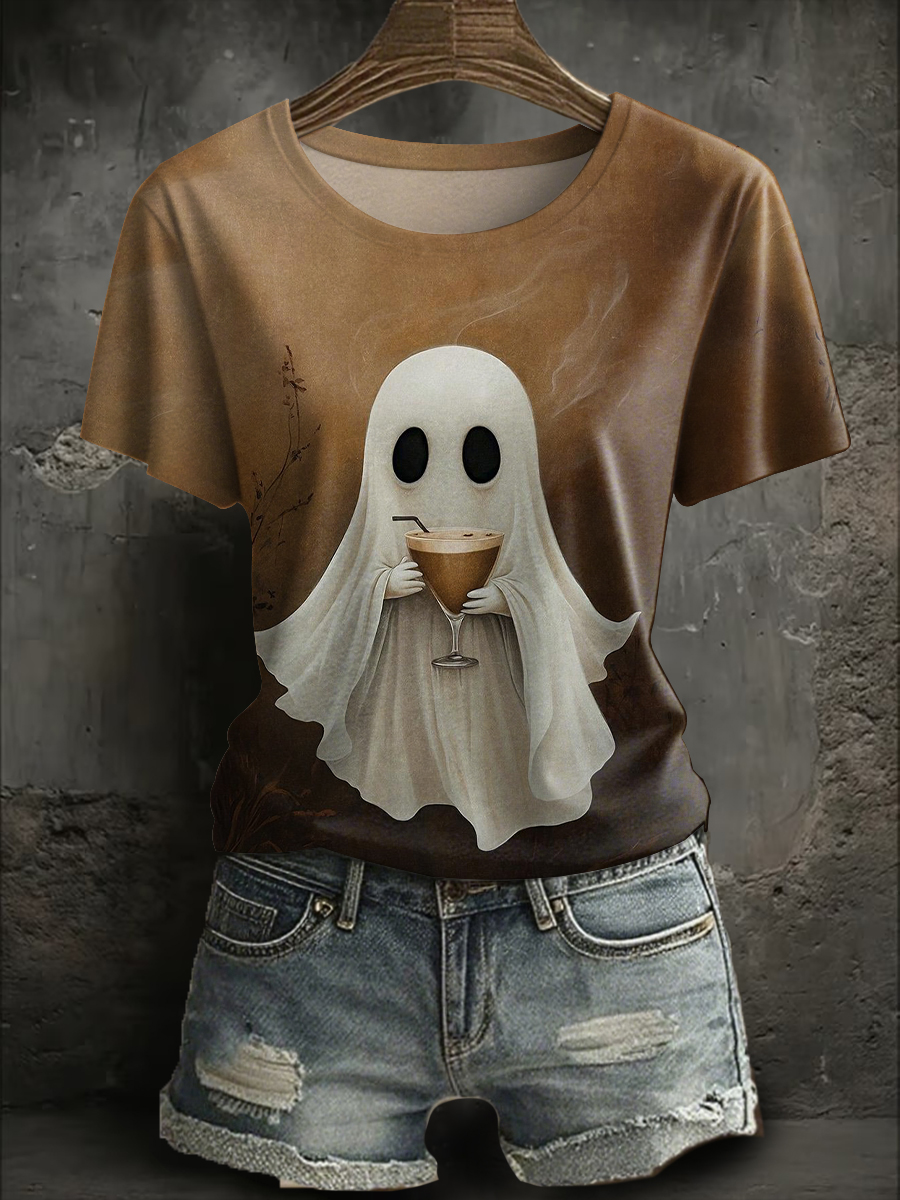 Damen Halloween Niedlich Boo Bedrucktes T-Shirt