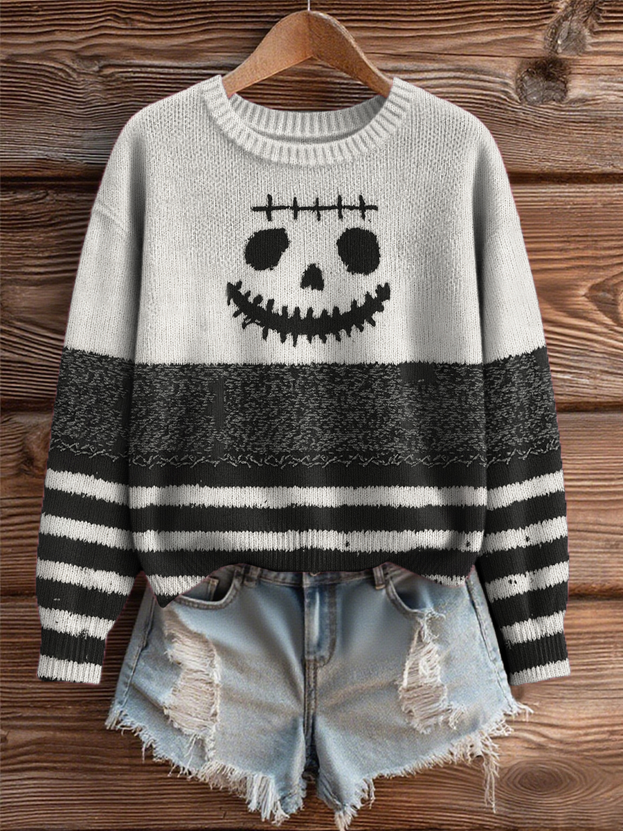 Damen Halloween Kürbis Gesichts druck Casual Sweatshirt