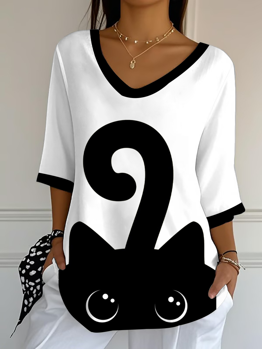 Damen-Halloween-Katzen-Print-Top