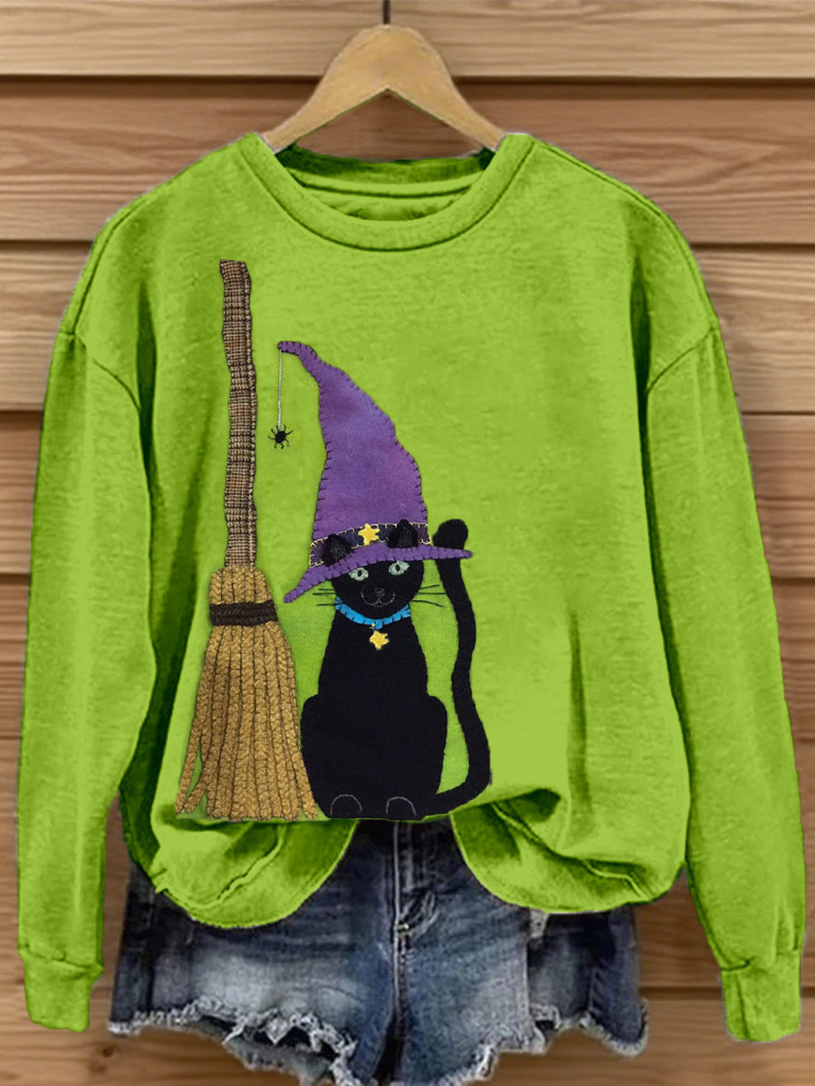 Damen Halloween Katze Patchwork Kunst Sweatshirt