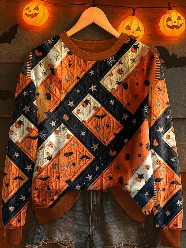 Damen-Halloween-Kürbis-Kunstdruck lässig Sweatshirt