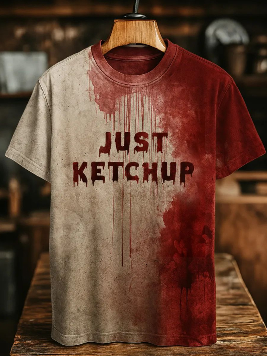 Herren T-Shirt mit nur Ketchup Blutiger Kunstdruck bedruckt