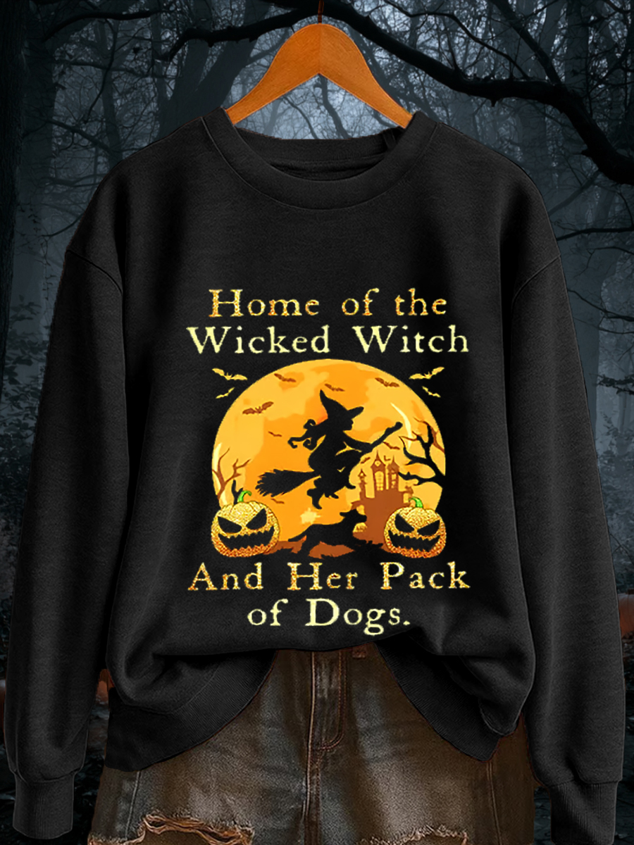 Damen-Halloween-Heim der bösen Hexe und ihrer Hunde packung Casual Sweatshirt