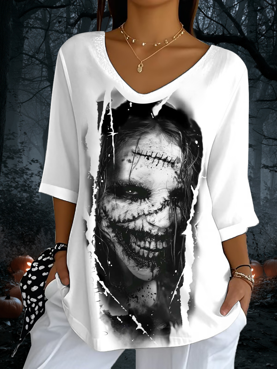 Frauen Halloween Horror Foto V-Ausschnitt T-Shirts