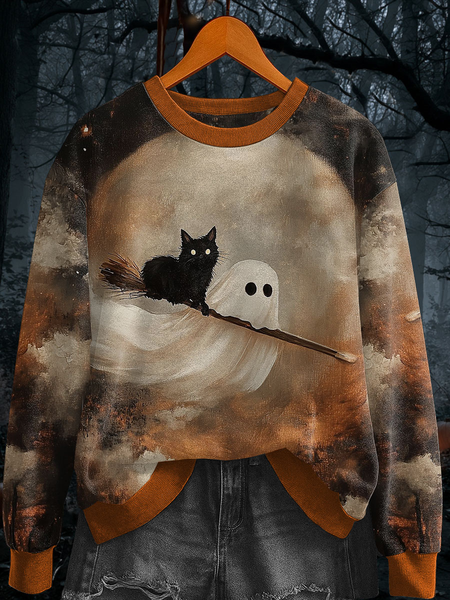 Frauen Halloween Geist schwarze Katze Sweatshirts