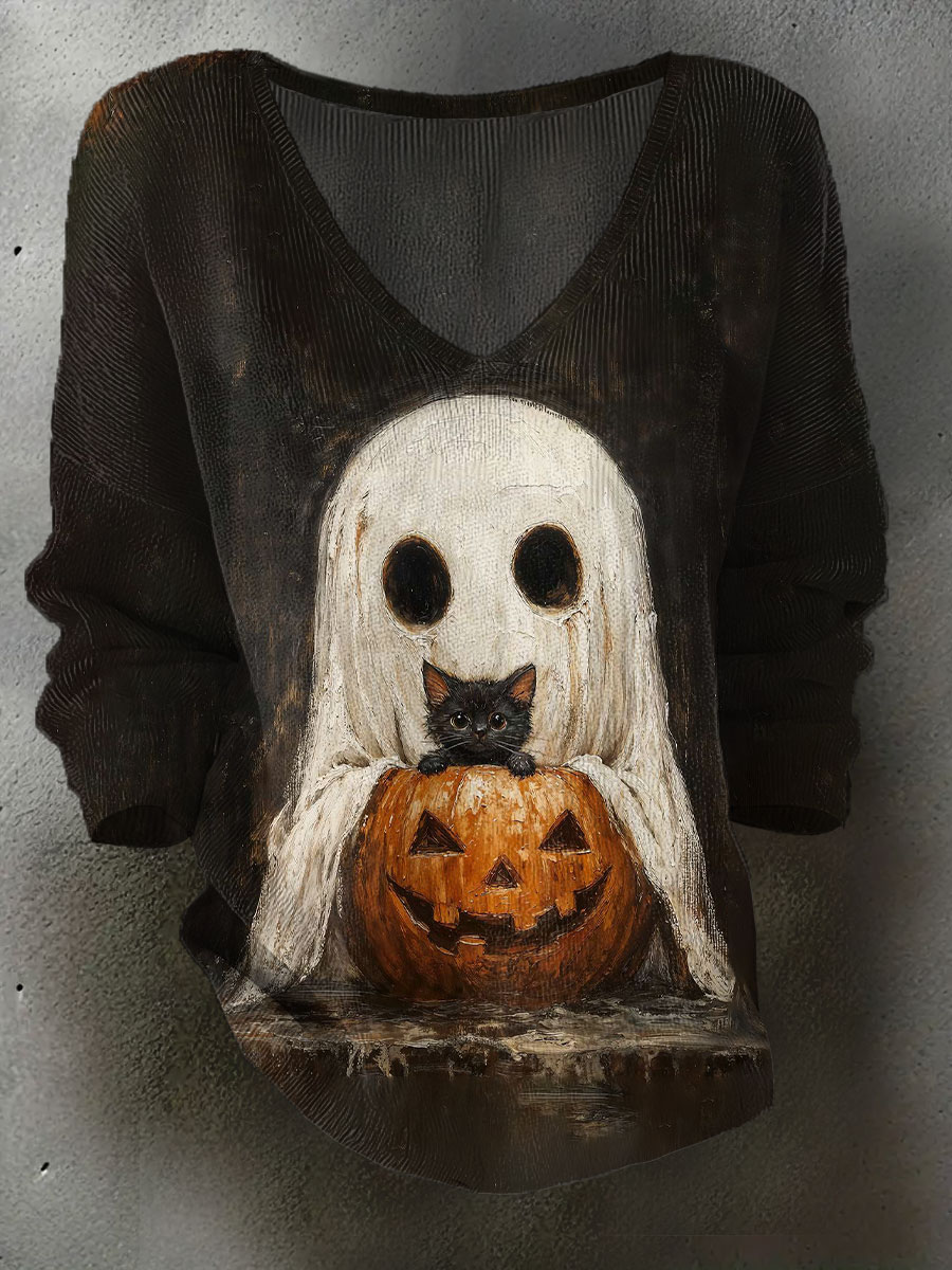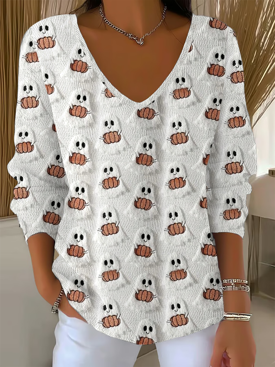 Damen Halloween Ghost Print Casual Top