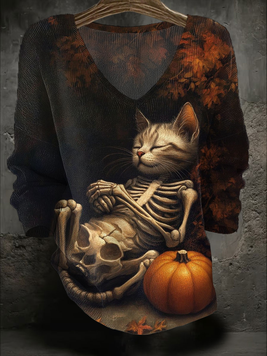 Damen Halloween Kunst bedruckte lässige Tops