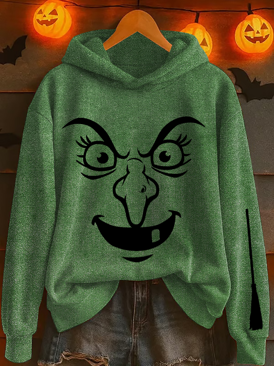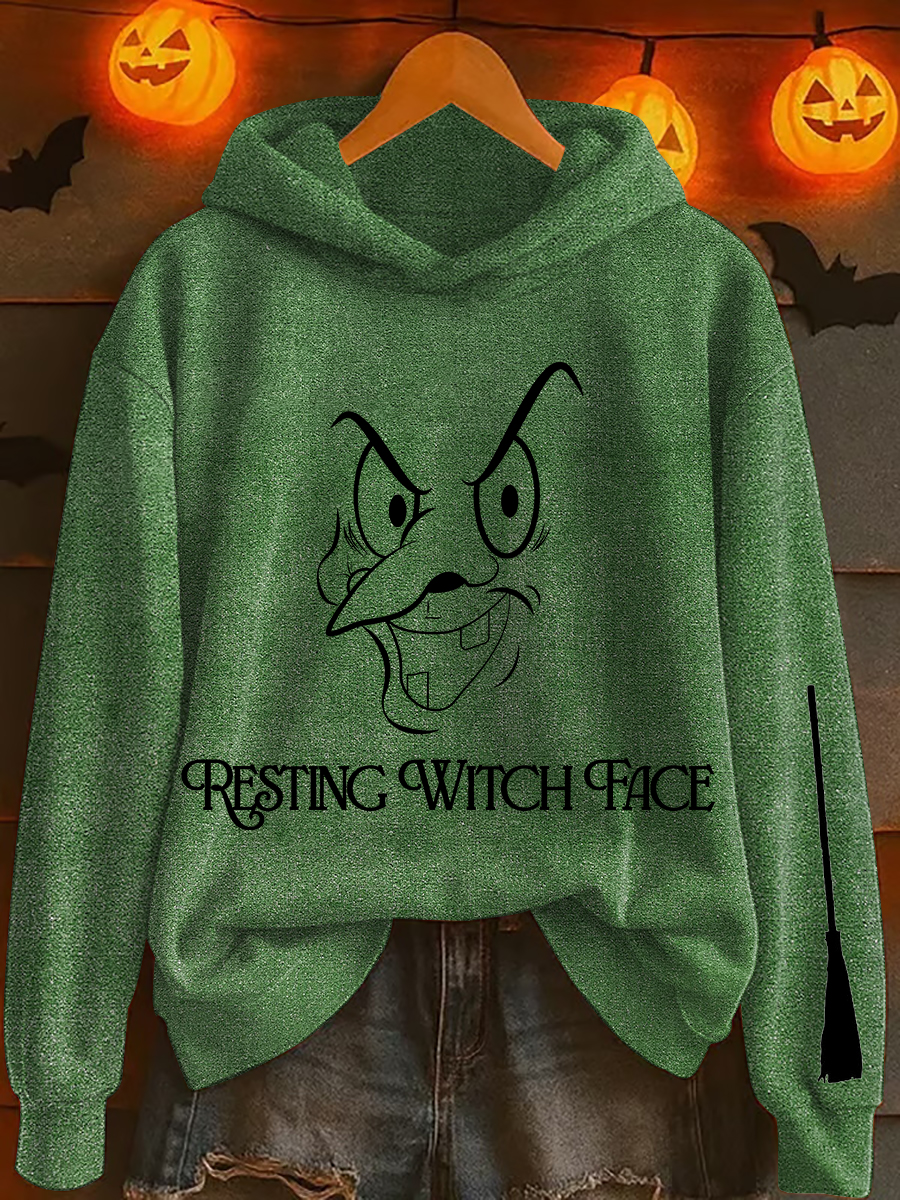 Damen-Kapuzen-Sweatshirt mit "ruhenden Hexen gesicht" bedruckt