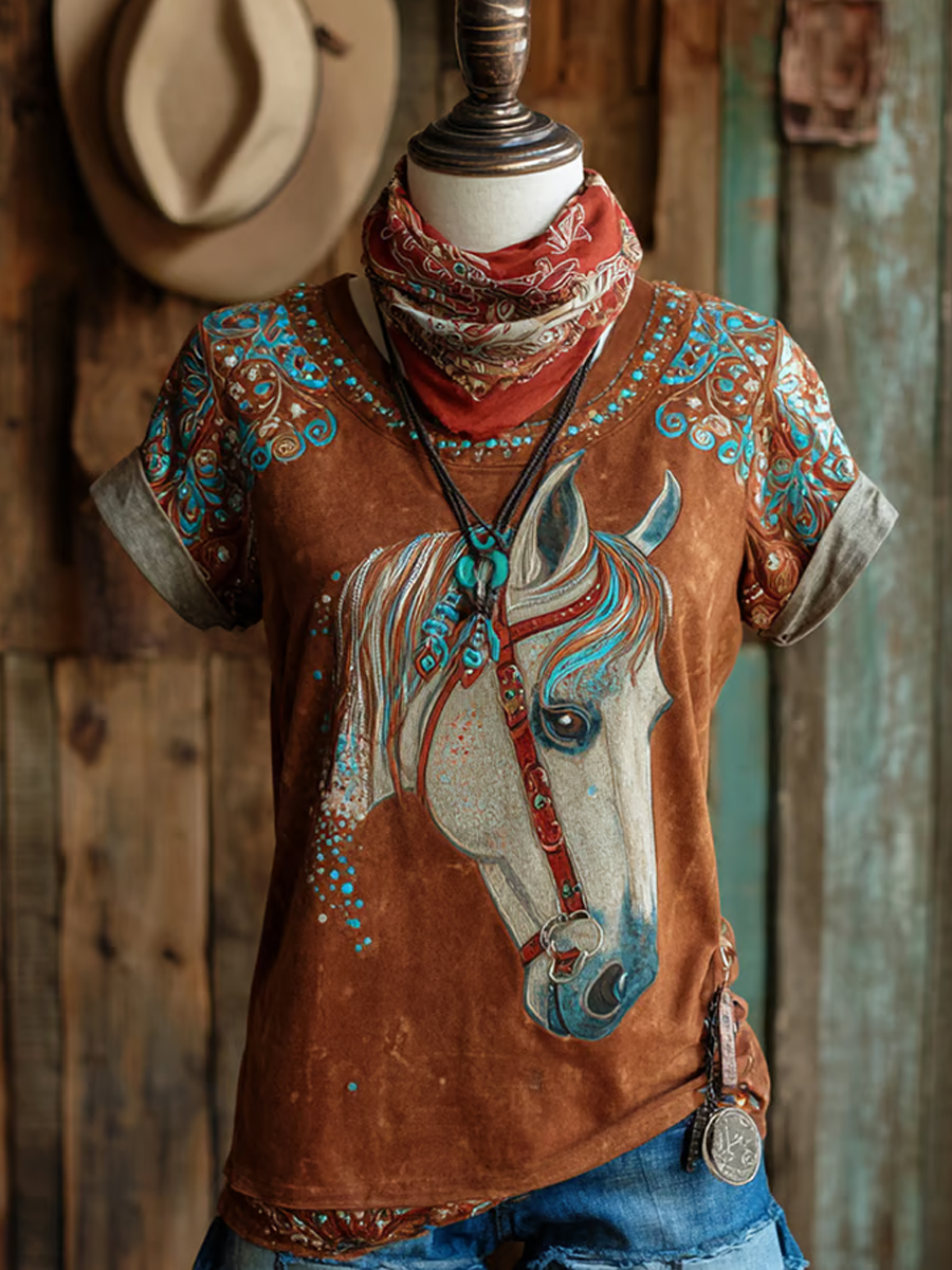 Frauen Western Horse Liebhaber Kurzarm T-Shirt