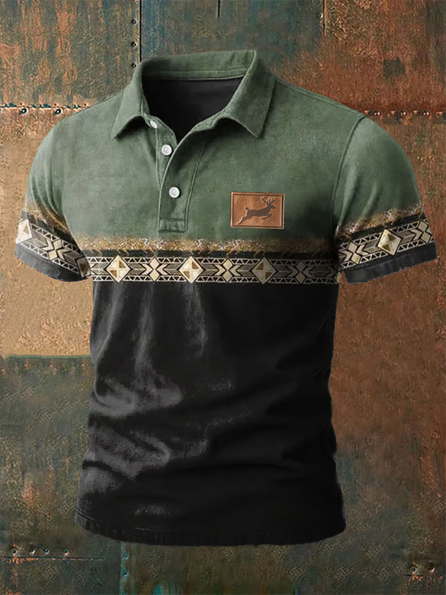Herren Retro Western Deer Head Leopard Print Casual Top