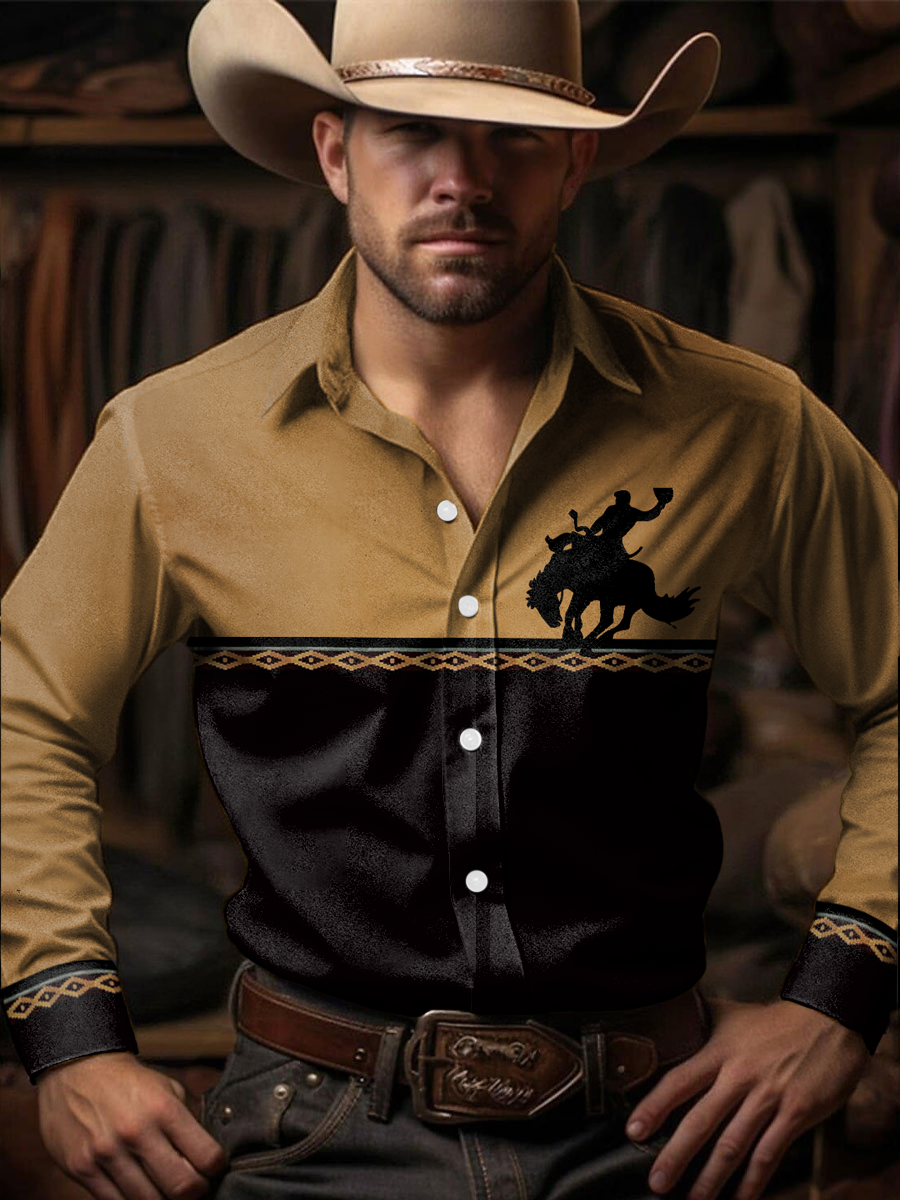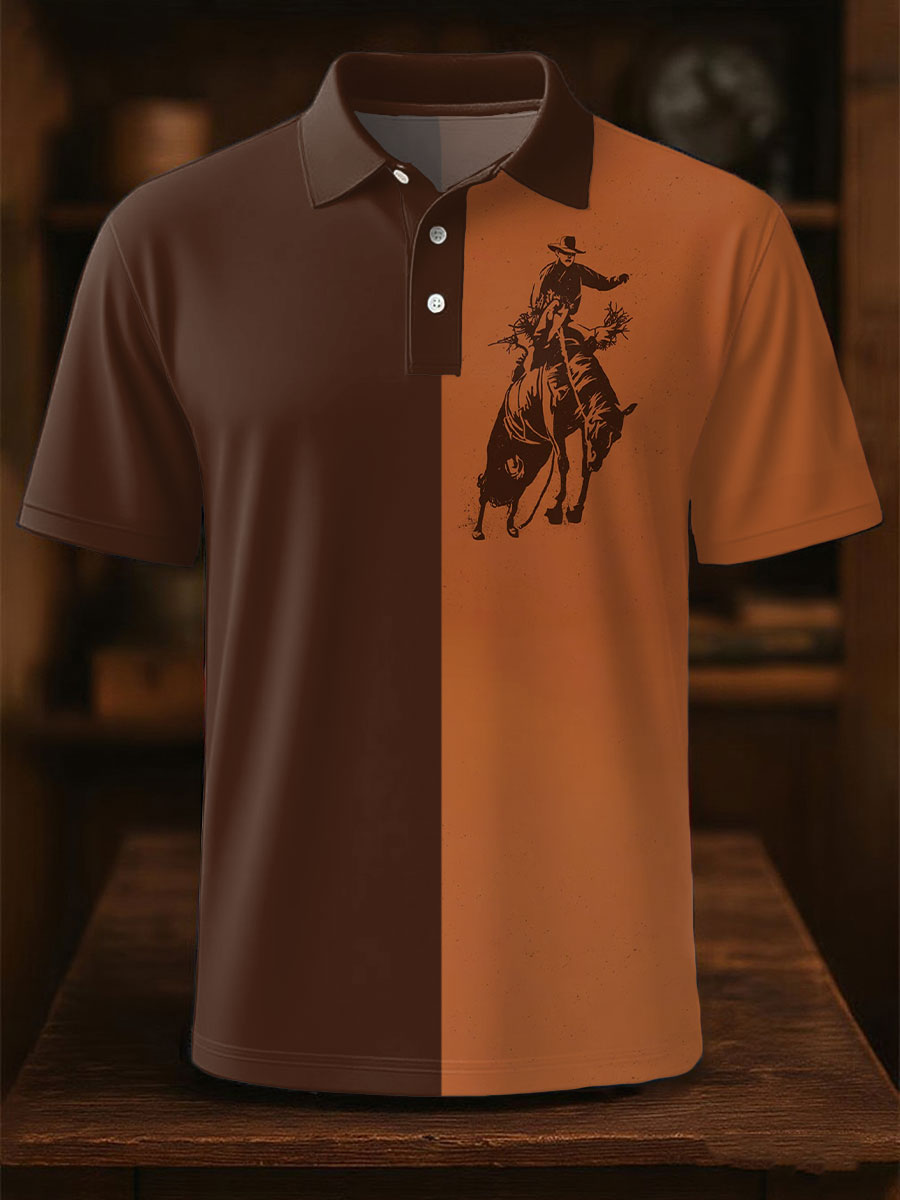 Herren Retro Western Print Lässiges Kurzarm-Shirt