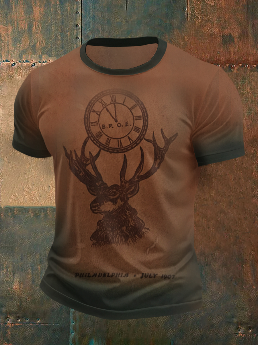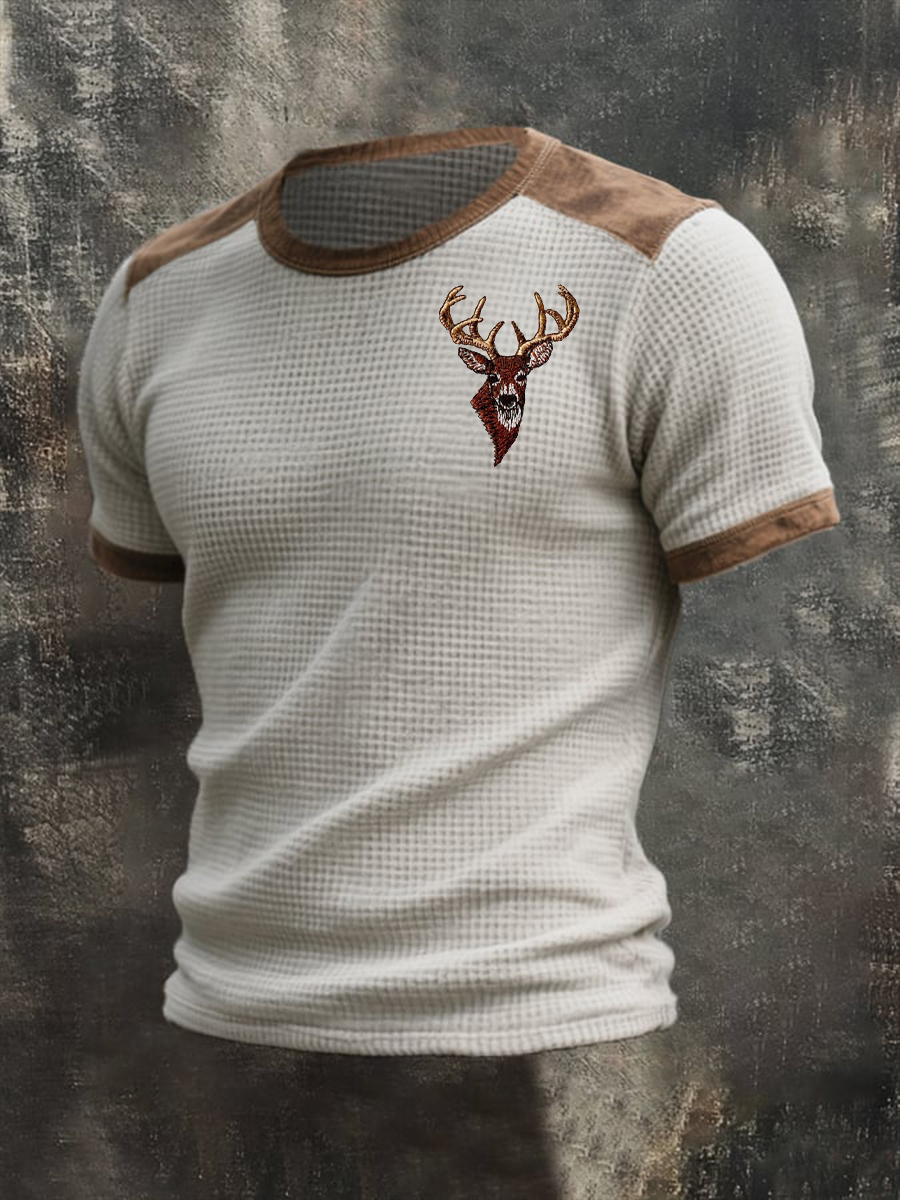 Männer Western Elch Kopf Waffel Kurzarm