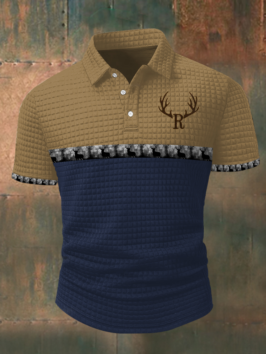 Herren Retro Western Deer Geweih Print Casual Waffel Sweatshirt