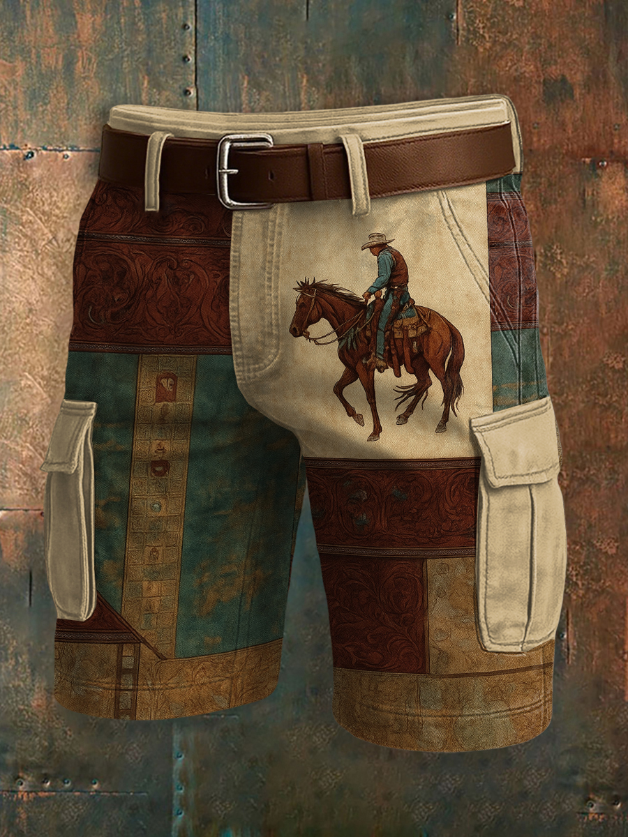 Herren-Shorts mit westlichem Retro-Grafik druck