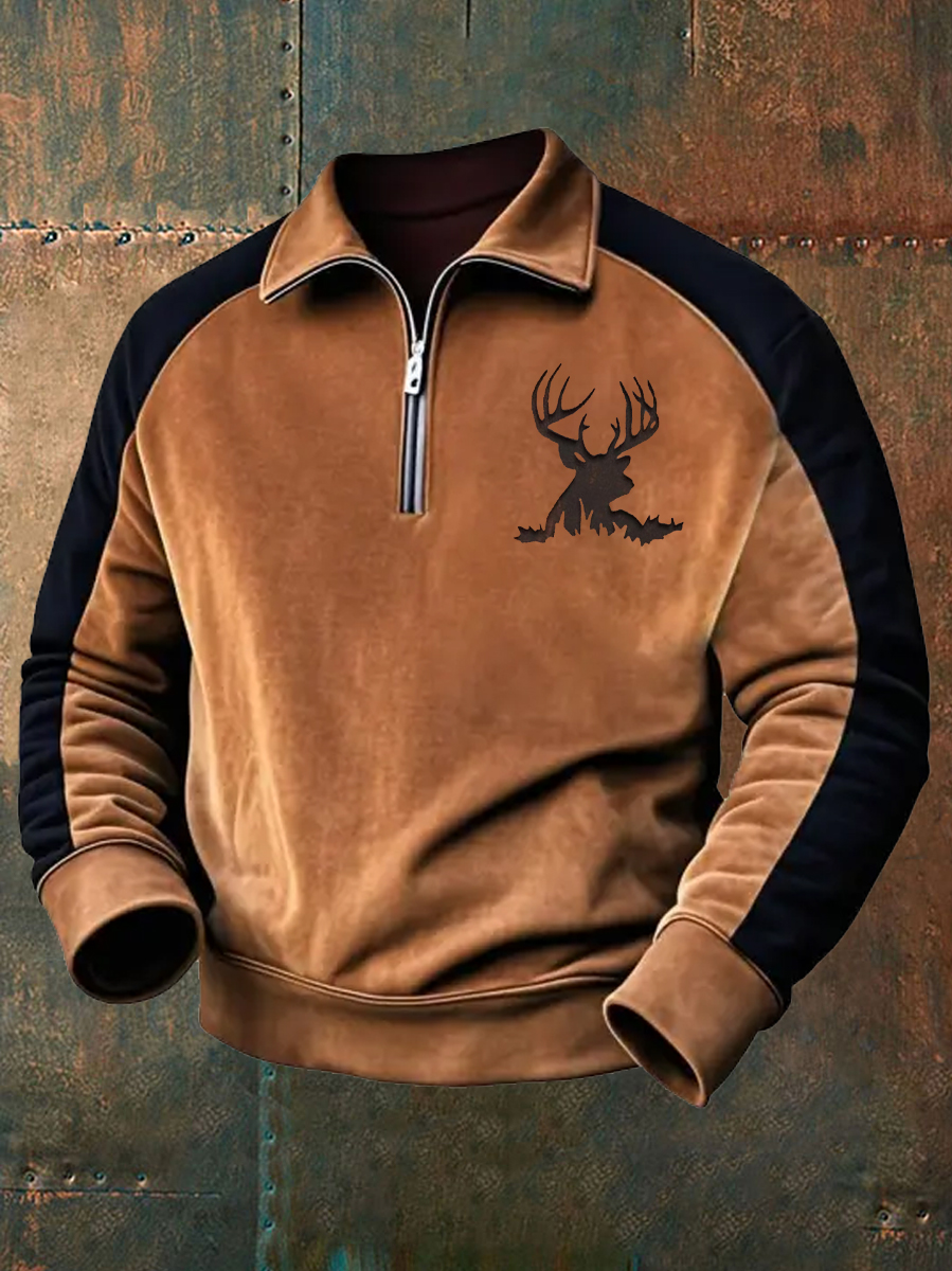 Herren Retro Western Deer Geweih Print Casual Reiß verschluss Sweatshirt