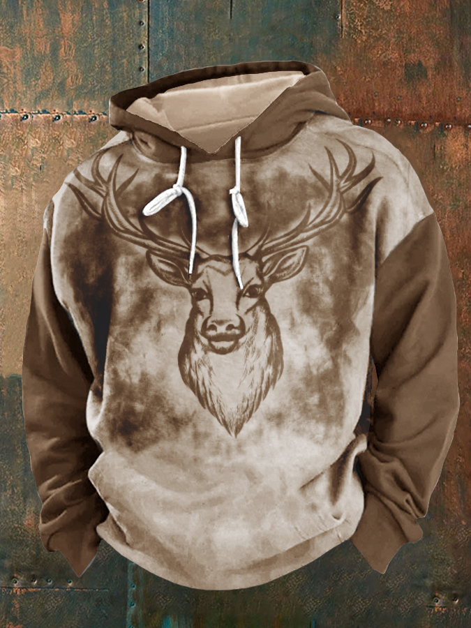 Herren Vintage Hirschjagd grafik Übergroßes Kapuzen-Sweatshirt