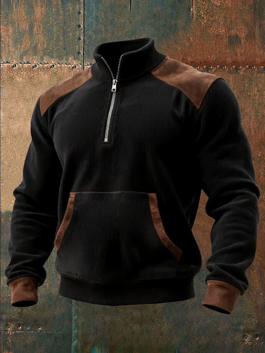 Herren Retro Color block Print Casual Pocket Reiß verschluss Sweatshirt