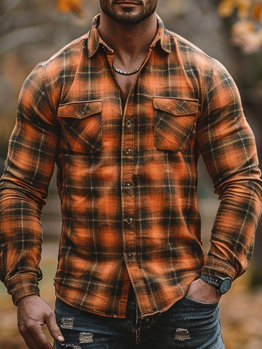 Herren Vintage Kariertes Muster Gemütliches Hemd