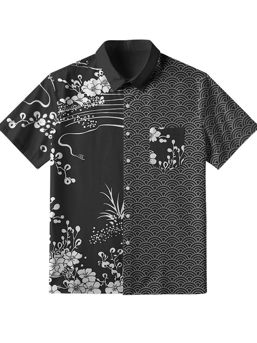 Herren-Kurzarm-Hemd mit japanischer Kunst