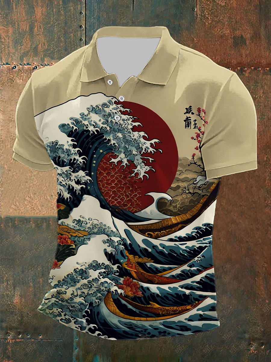 Japanische Herren Kunstdruck T-Shirt mit kurzen Ärmeln