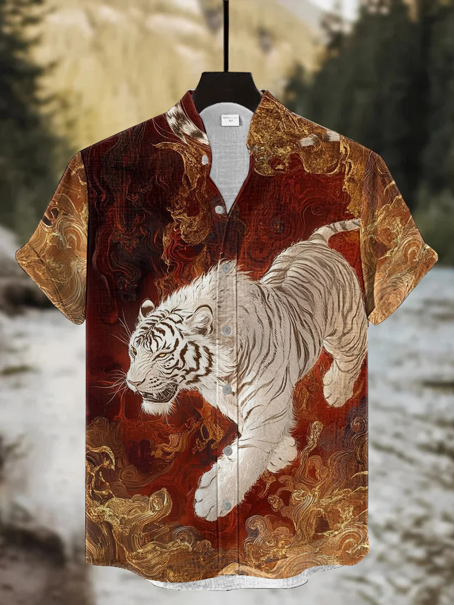 Herren Vintage Kunst Tiger Kurz ärmel iges Hemd