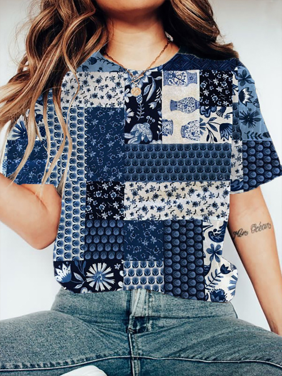 Kurzärmliges T-Shirt mit japanischen Kunst blumen