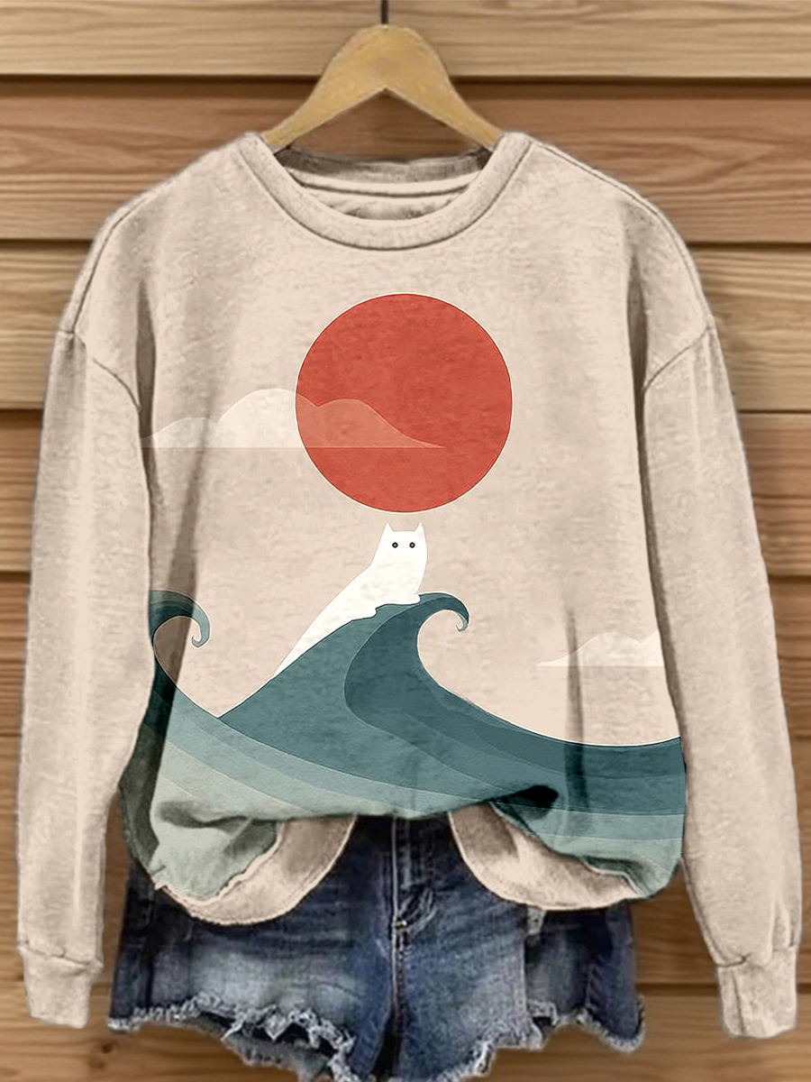Frauen lustige Katze Kunstdruck Sweatshirt