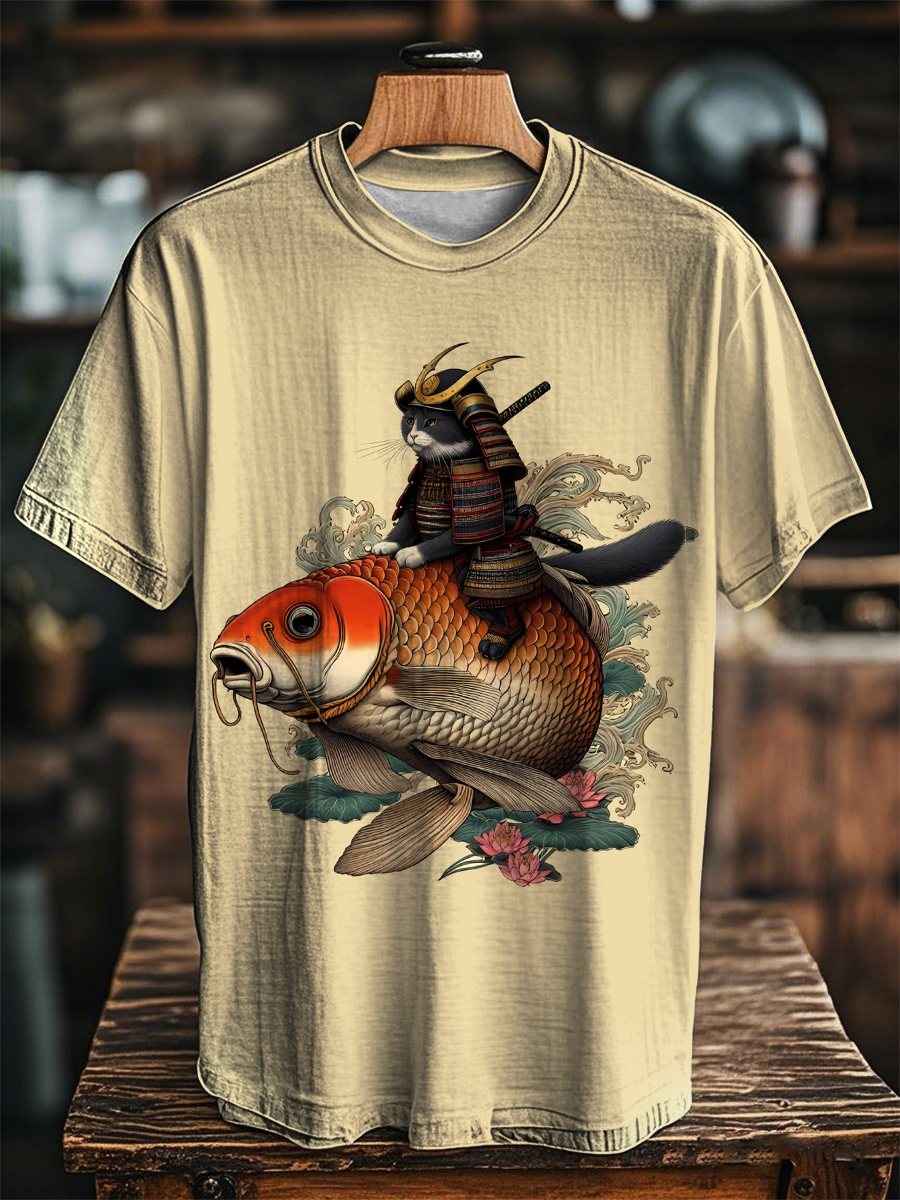 Herren Japanische Kunst Katze Lässiges Kurzarm-Shirt