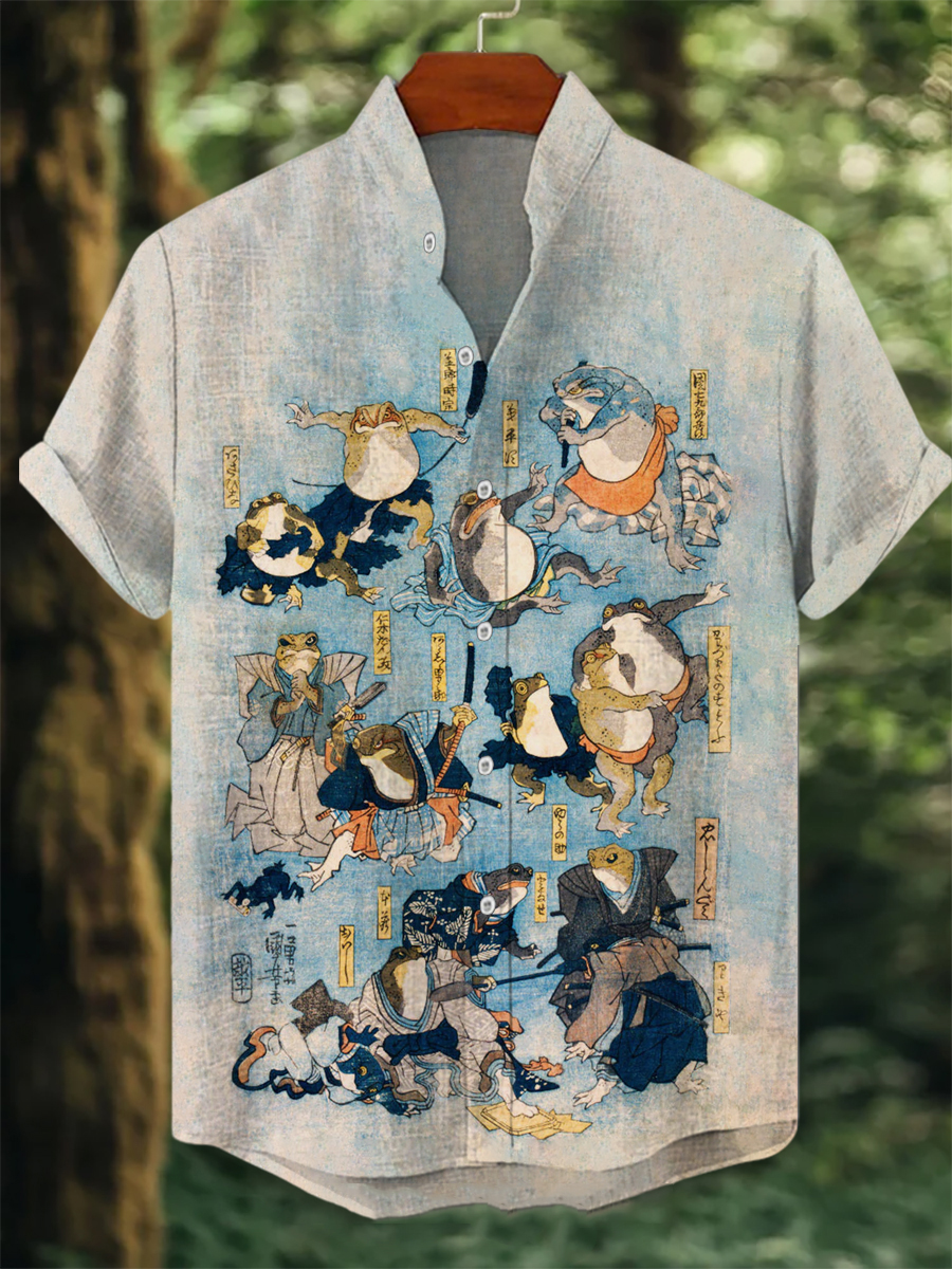 Herren-Kurzarm-Hemd mit japanischer Kunst