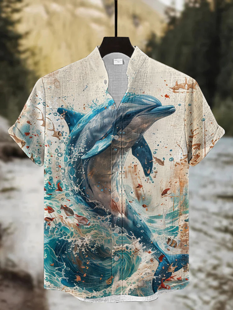 Herren Vintage Kunst Delphin Kurzarm-Shirt