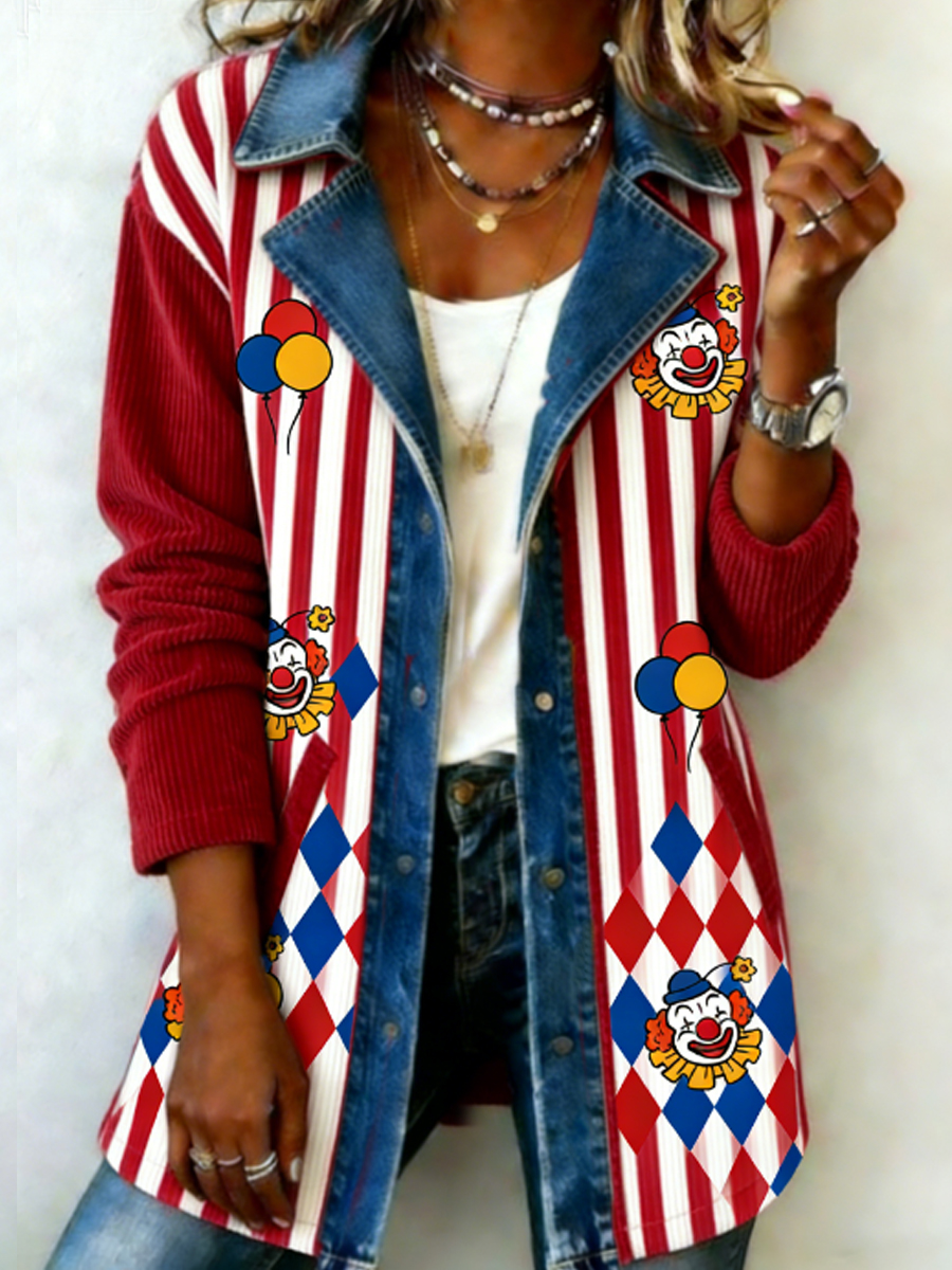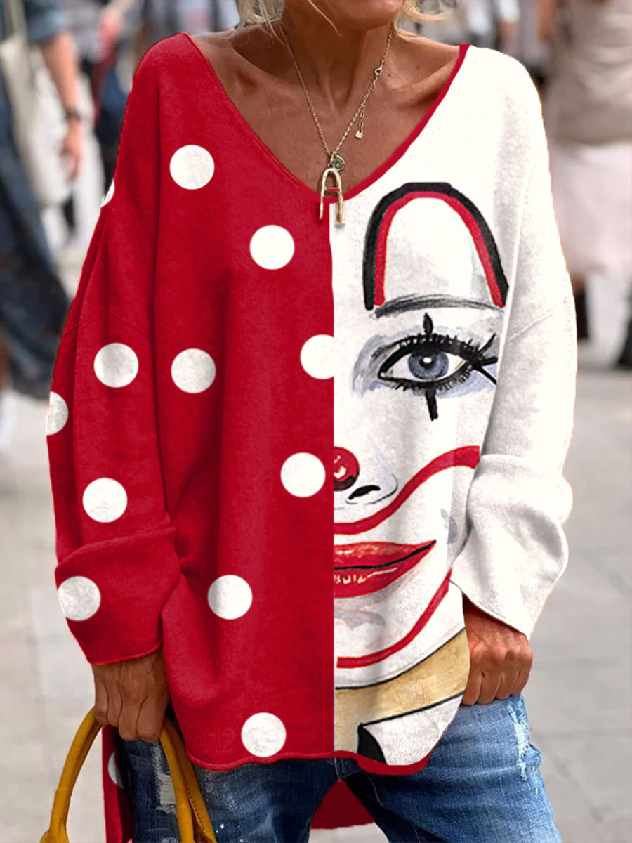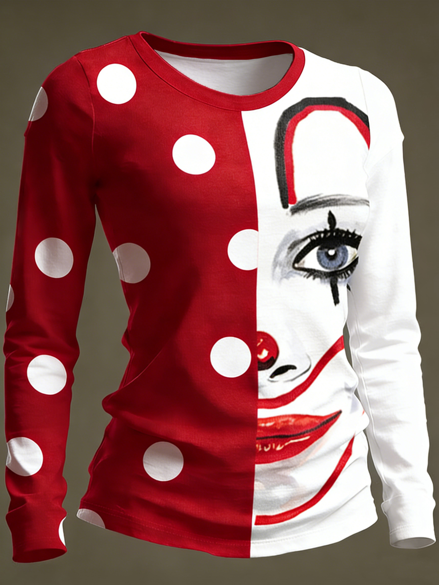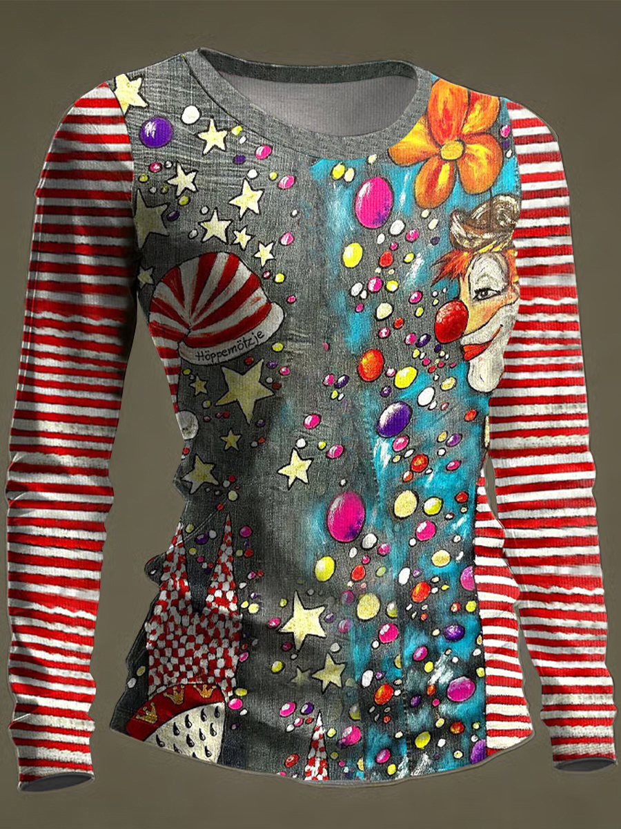 Frauen Köln Karneval Clown Print Langarm T-Shirt
