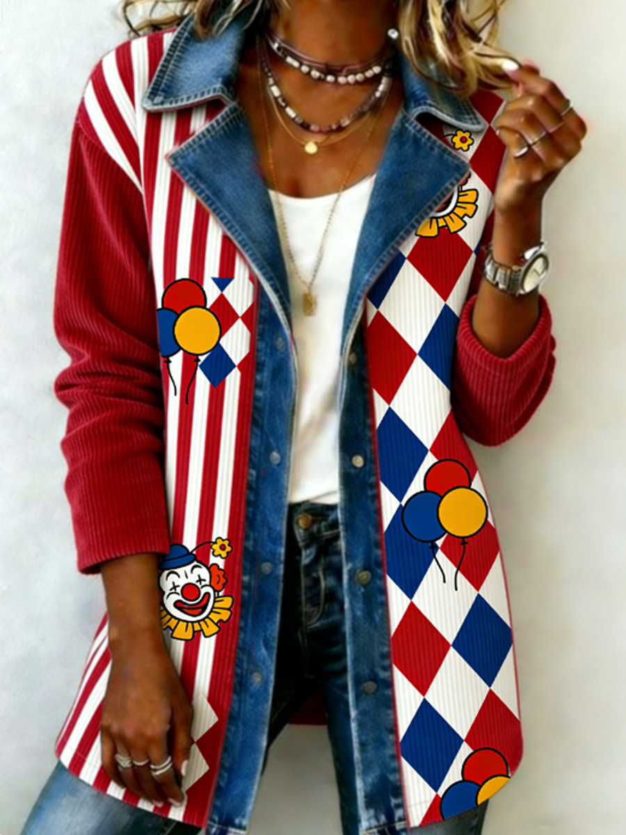Damen-Kölner Karneval bedrucktes Jeans-Patchwork-Top