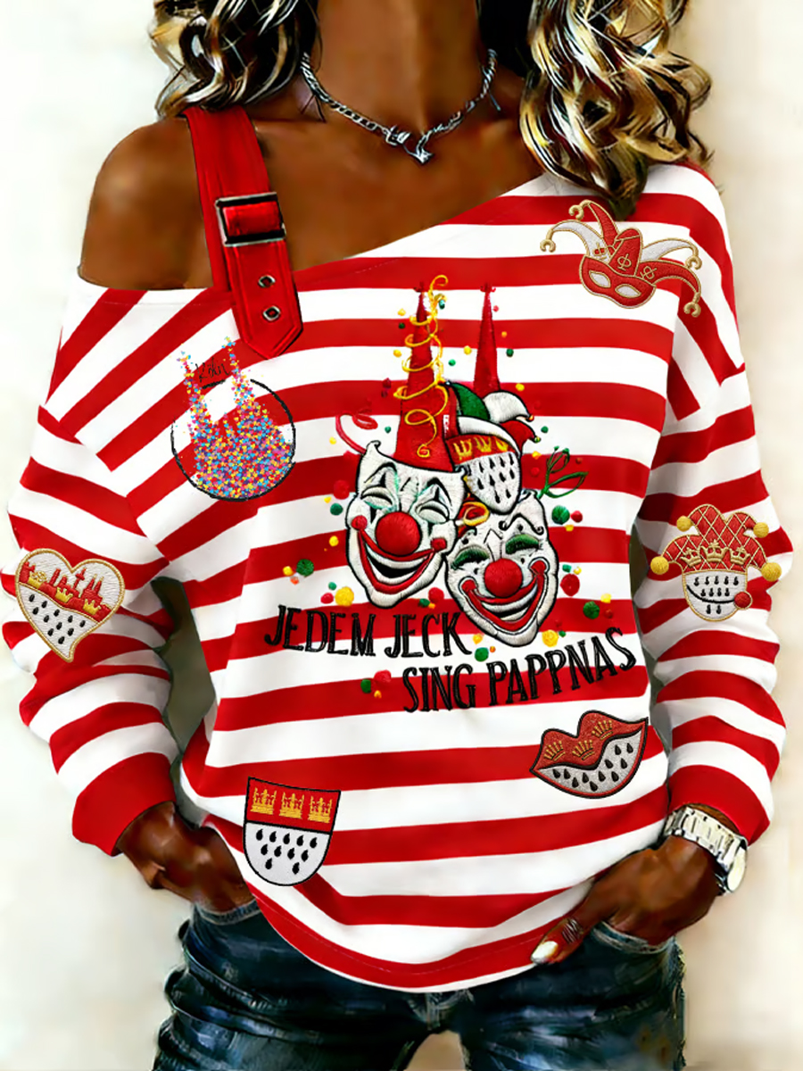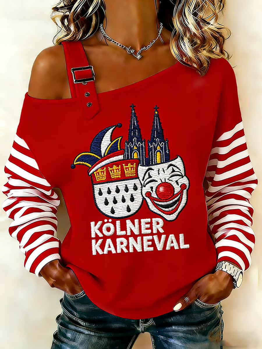 Damen Kölner Karneval Print lässig schulter freies Sweatshirt