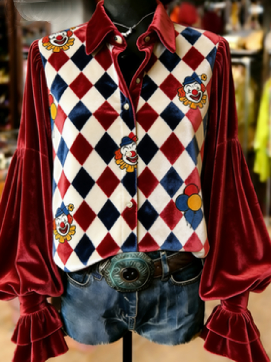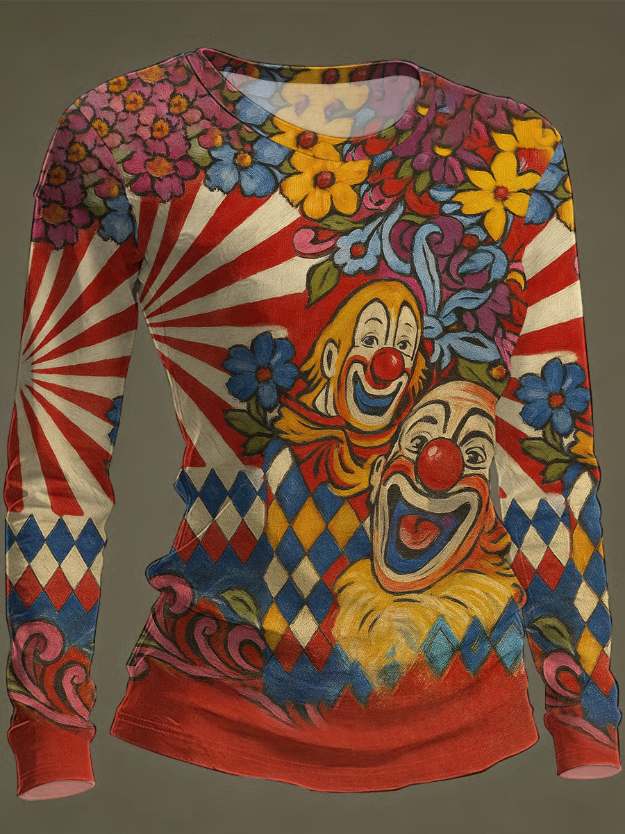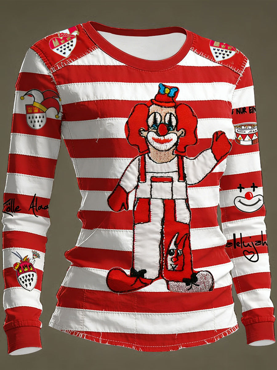 Frauen Köln Karneval Clown Print Langarm T-Shirt